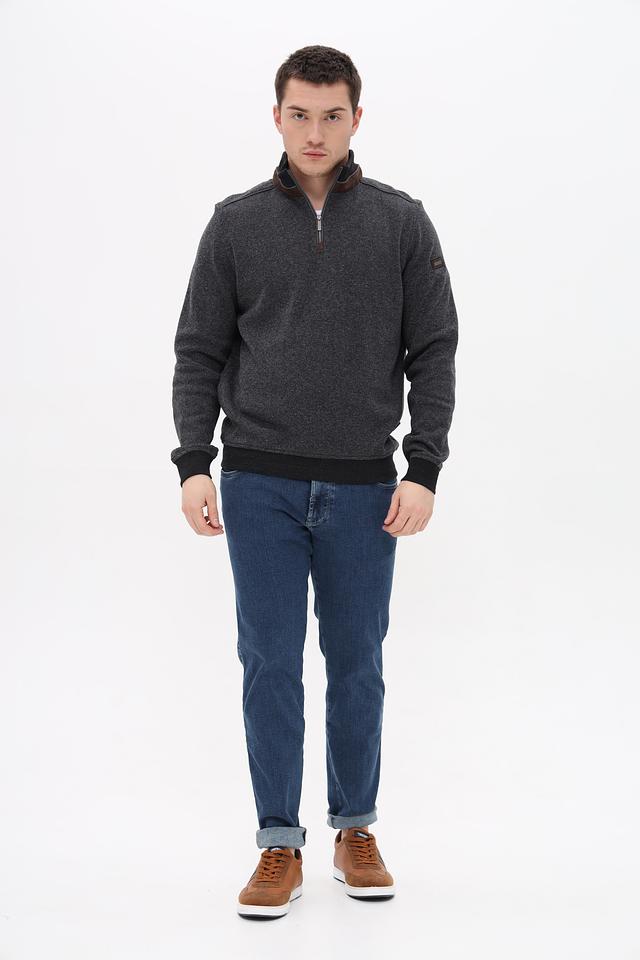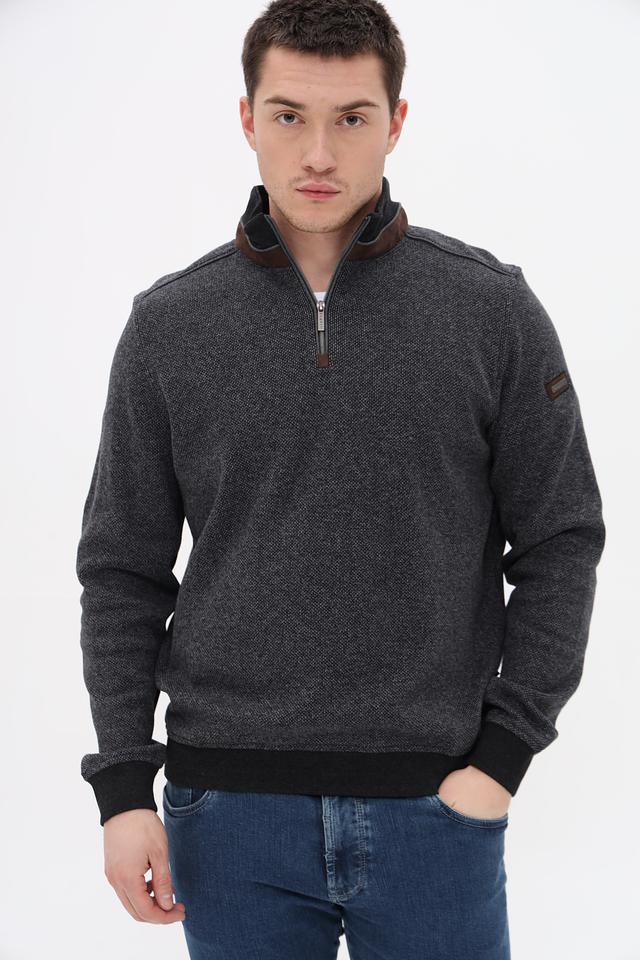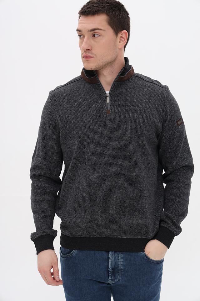 Мужской джемпер Bugatti серого цвета с воротником-стойкой и молнией. Изготовлен из 100% хлопка, обеспечивающего комфорт и удобство в носке. Состав: хлопок 100%