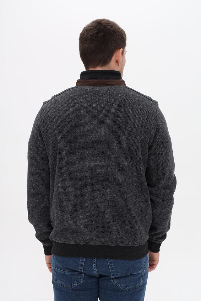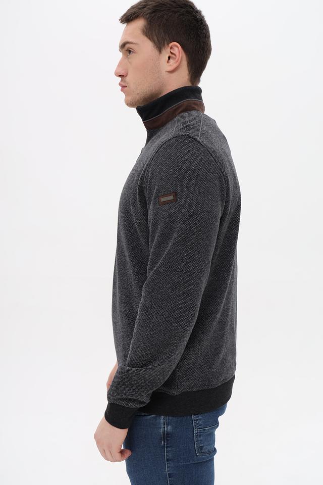 Мужской джемпер от Bugatti выполнен в сером цвете с текстурированным узором. Модель имеет воротник-стойку и короткую молнию, что придает ей современный и стильный вид.