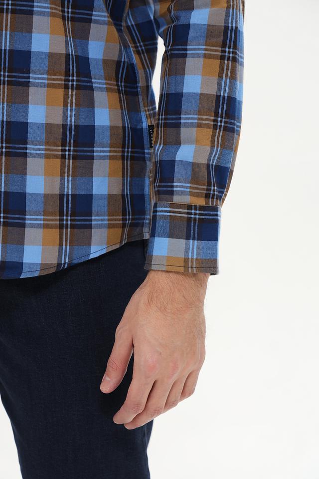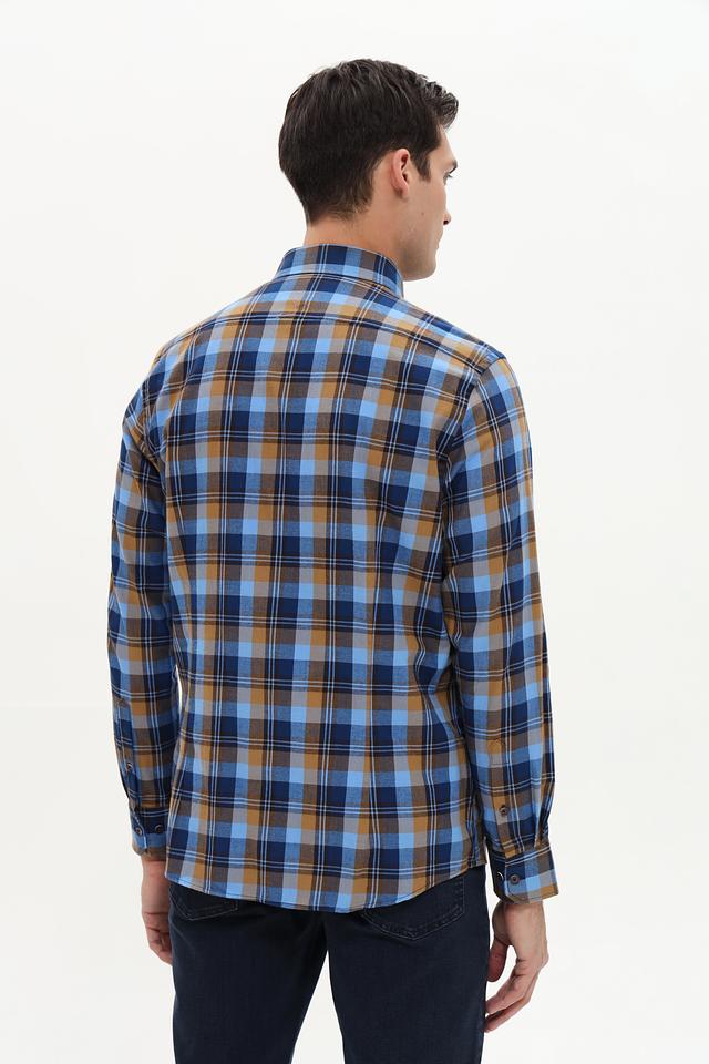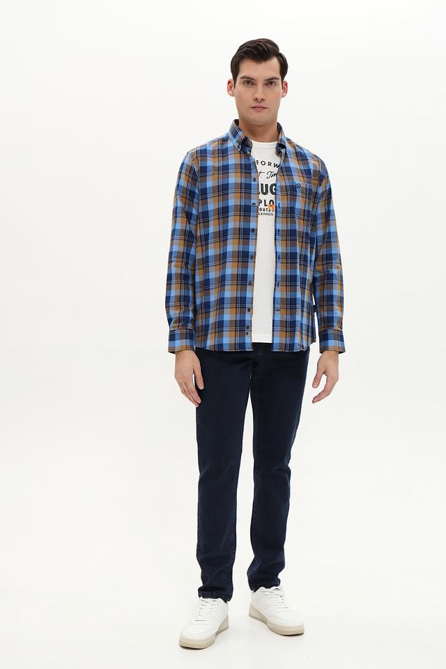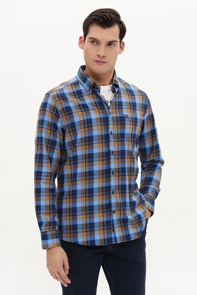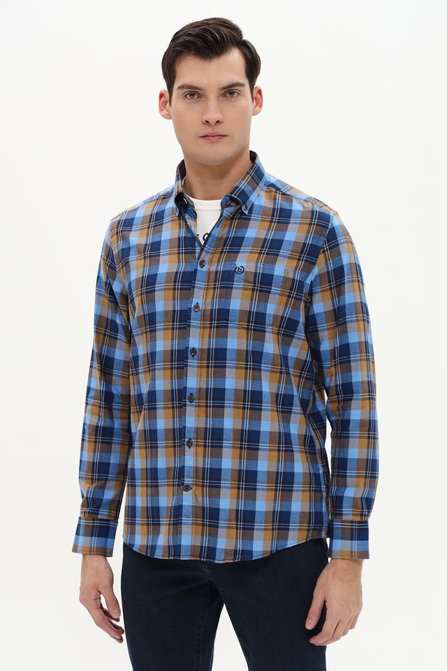 Мужская рубашка Bugatti сине-горчичного цвета в классическую клетку. Изготовлена из 100% хлопка, обеспечивающего комфорт и воздухопроницаемость. Отличный выбор для создания стильного повседневного образа. Состав: хлопок 100%
