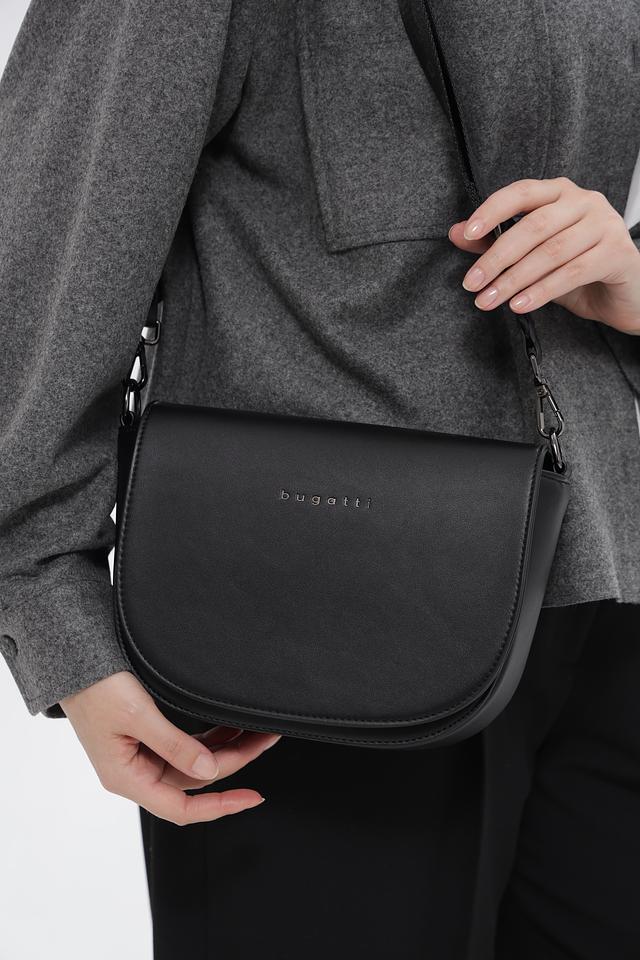 Сумка оснащена регулируемым плечевым ремнем, что позволяет носить ее комфортно на плече или через грудь. Логотип бренда Bugatti деликатно размещен на лицевой стороне сумки.