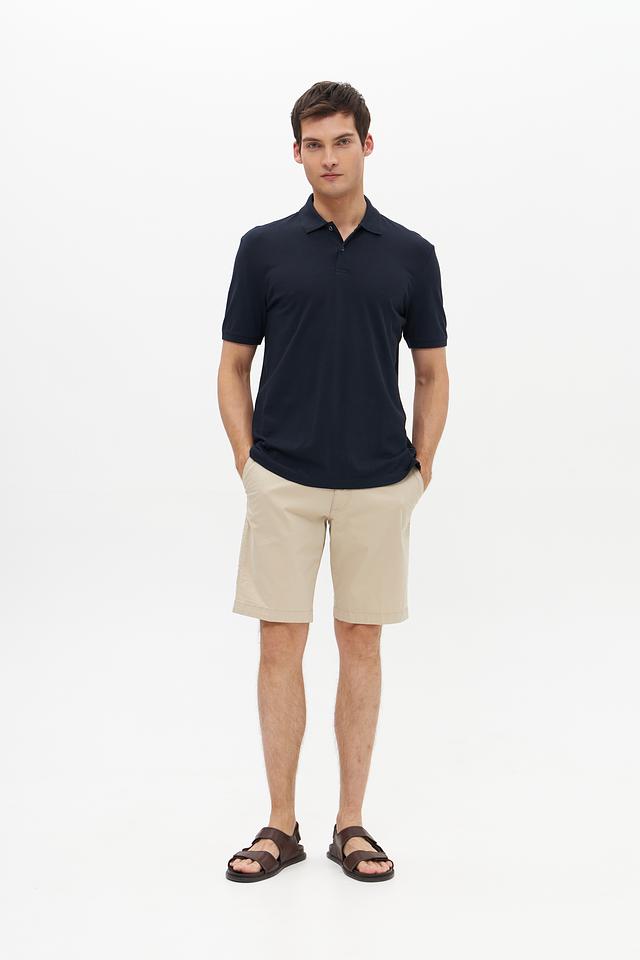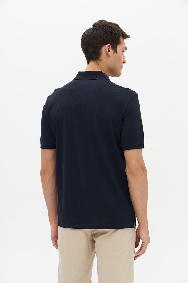 Классический крой поло идеально подходит для любого типа фигуры, а лаконичный дизайн позволяет сочетать его с различными элементами гардероба – от джинсов до шорт. Темно-синий цвет делает эту модель универсальной и подходящей для различных случаев.