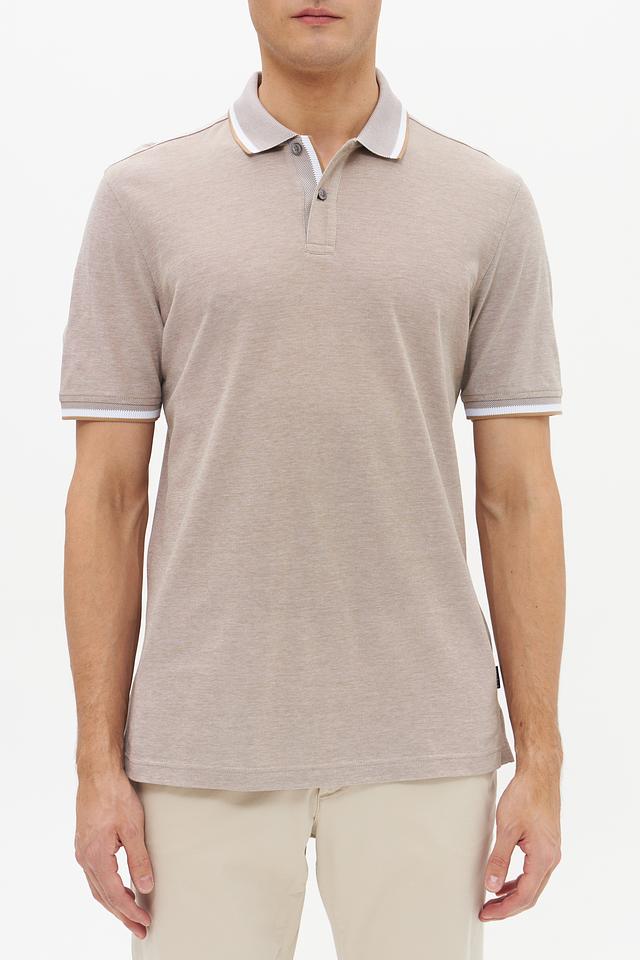 Мужское поло Bugatti бежевого цвета с контрастной отделкой на воротнике и рукавах. Классический крой и 100% хлопковый состав обеспечивают комфорт и удобство в носке. Состав: хлопок 100%