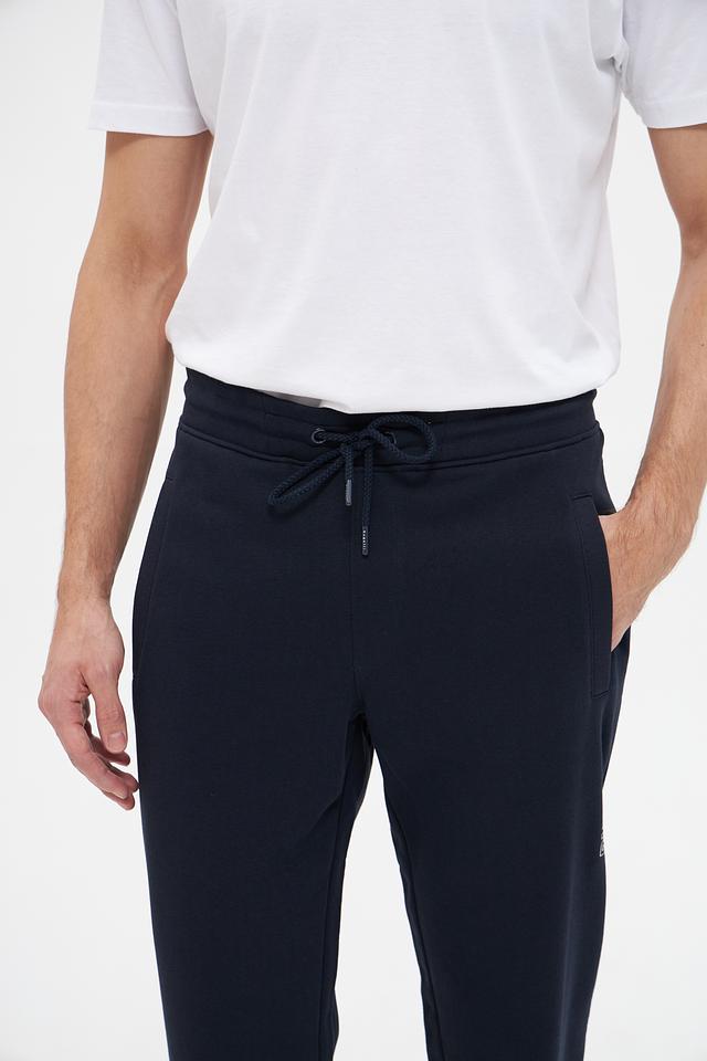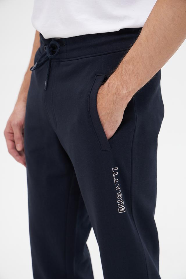 Представляем мужские спортивные брюки от Bugatti, выполненные в глубоком темно-синем цвете. Эта модель сочетает в себе комфорт и современный стиль, идеально подходя для занятий спортом или повседневной носки.