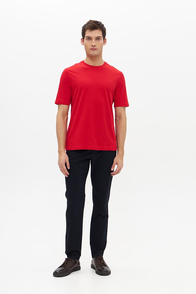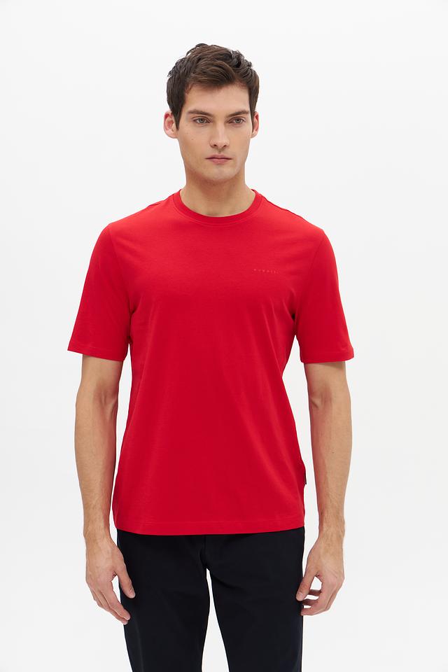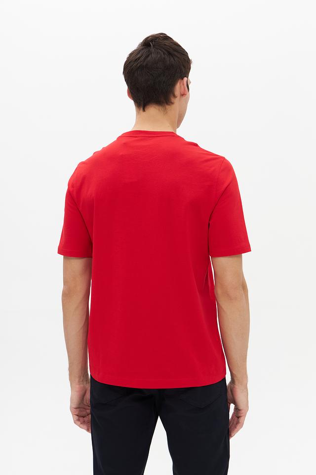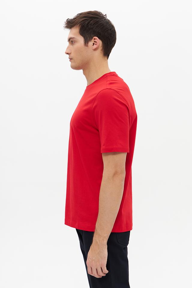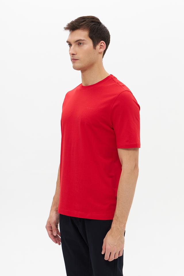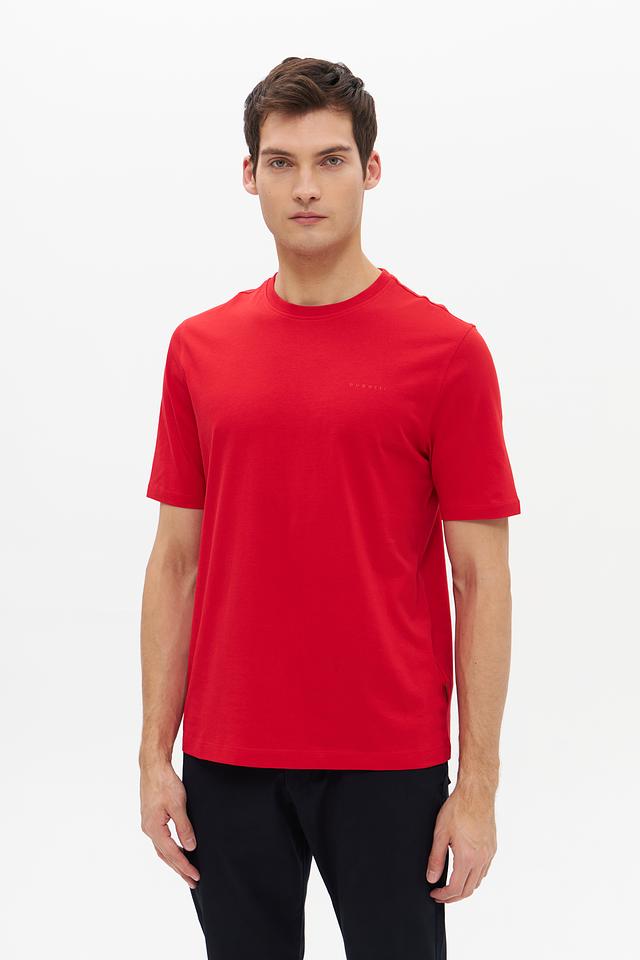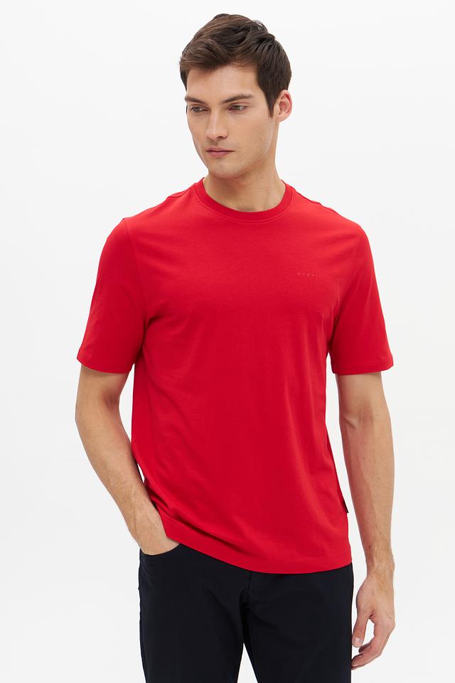 Яркий красный цвет делает эту футболку заметной и стильной. Минималистичный дизайн без лишних деталей подчеркивает современный стиль. Небольшой логотип бренда, расположенный на груди, добавляет изысканности.
