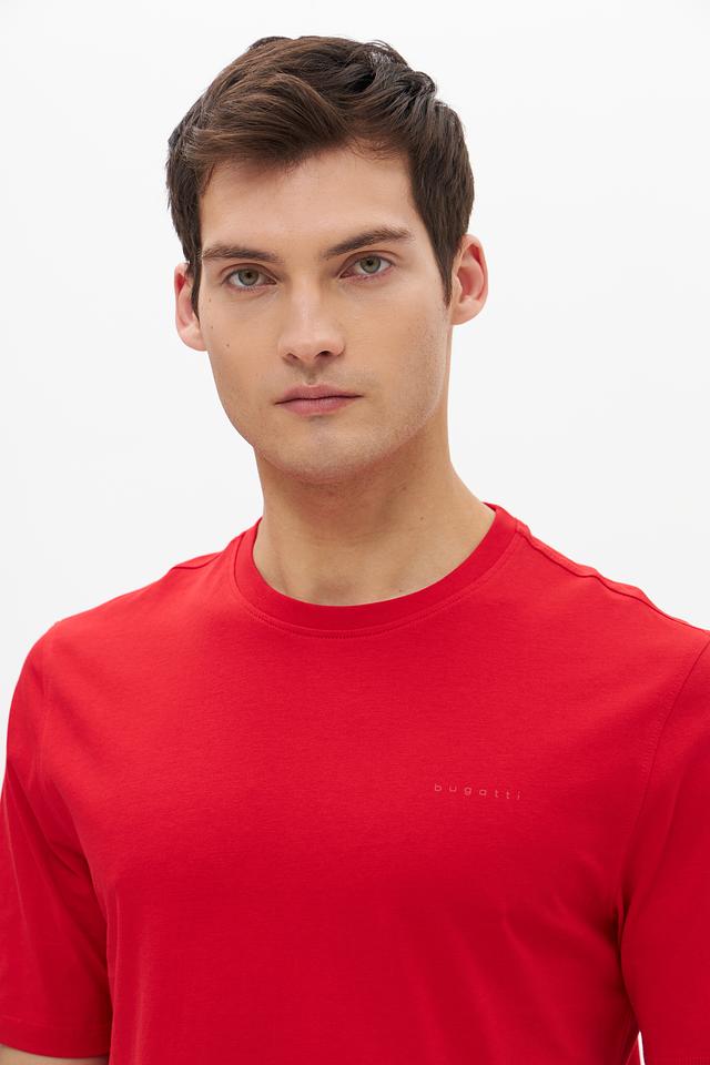 Мужская футболка Bugatti насыщенного красного цвета – это стильная и комфортная базовая вещь. Классический крой и минималистичный дизайн делают её универсальным дополнением к любому гардеробу. Состав: хлопок 100%