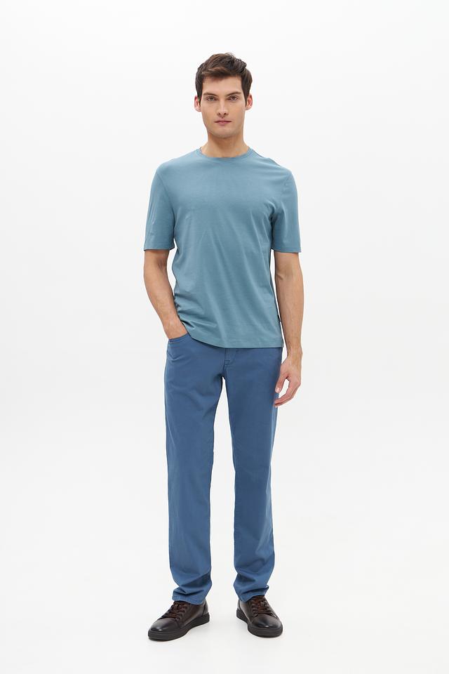 Модель имеет классический крой с круглым вырезом горловины и короткими рукавами. Футболка выполнена из 100% хлопка, что обеспечивает комфорт и воздухопроницаемость в течение всего дня. Ткань приятна на ощупь и не вызывает раздражения.