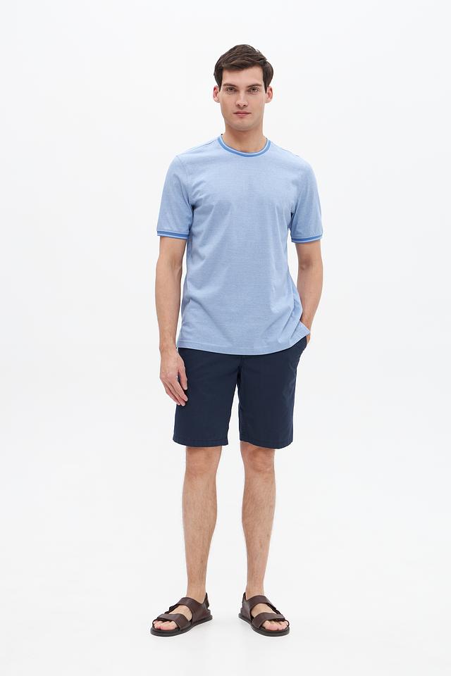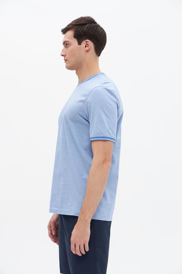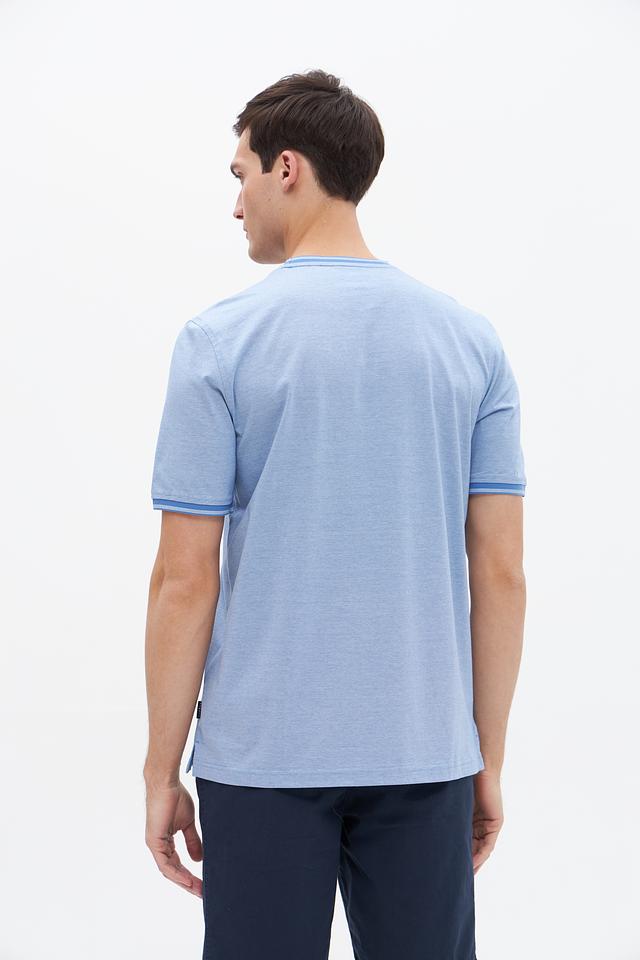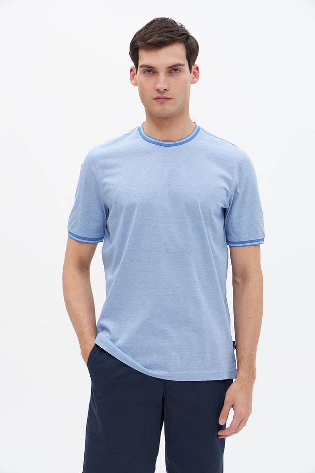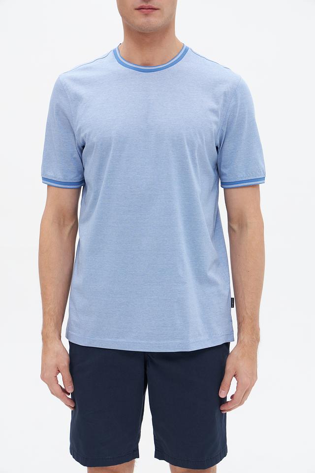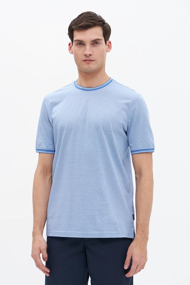 Мужская футболка Bugatti голубого цвета с контрастной отделкой по горловине и рукавам. Изготовлена из 100% хлопка, обеспечивающего комфорт и воздухопроницаемость. Состав: хлопок 100%