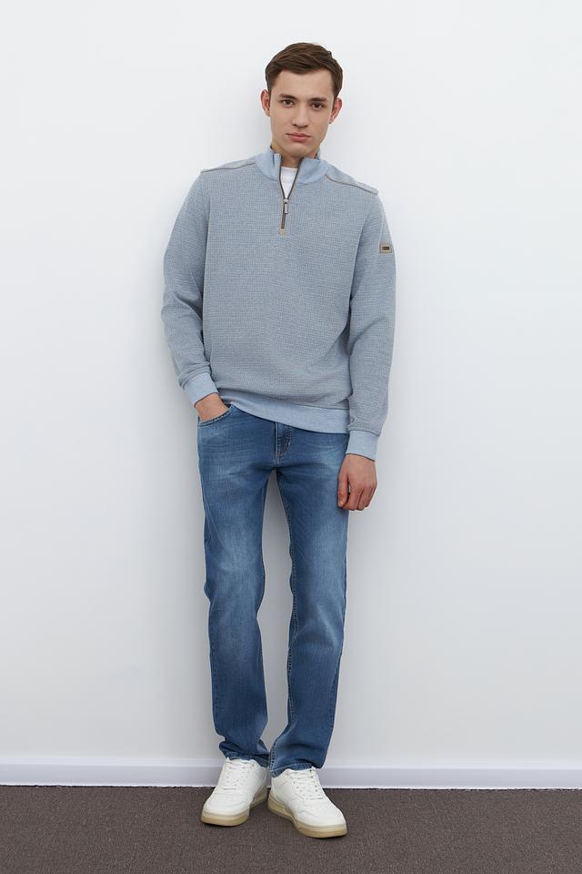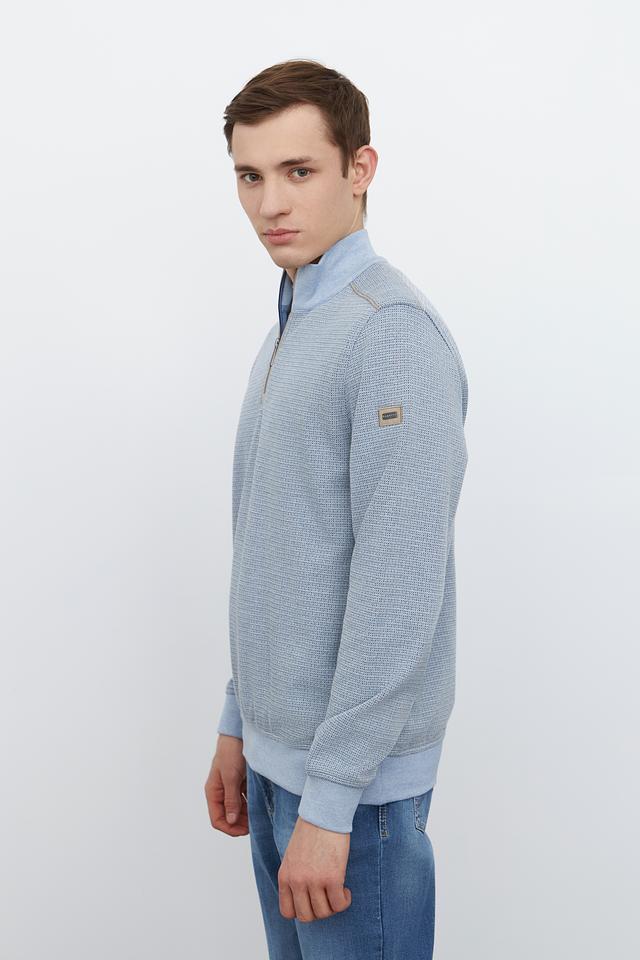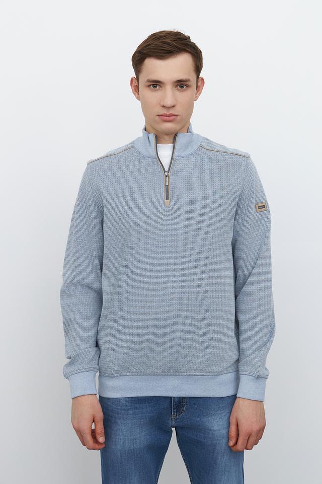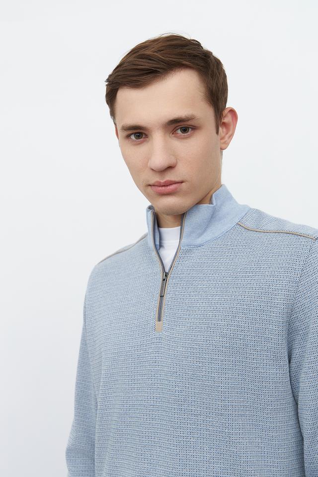 Мужской джемпер Bugatti голубого цвета с короткой молнией на воротнике. Изготовлен из хлопка с добавлением полиэстера для комфорта и долговечности. Состав: хлопок 65%, полиэстер 35%