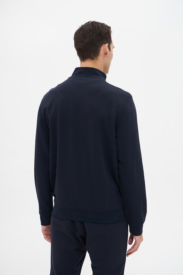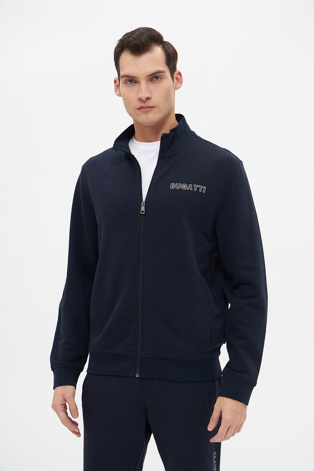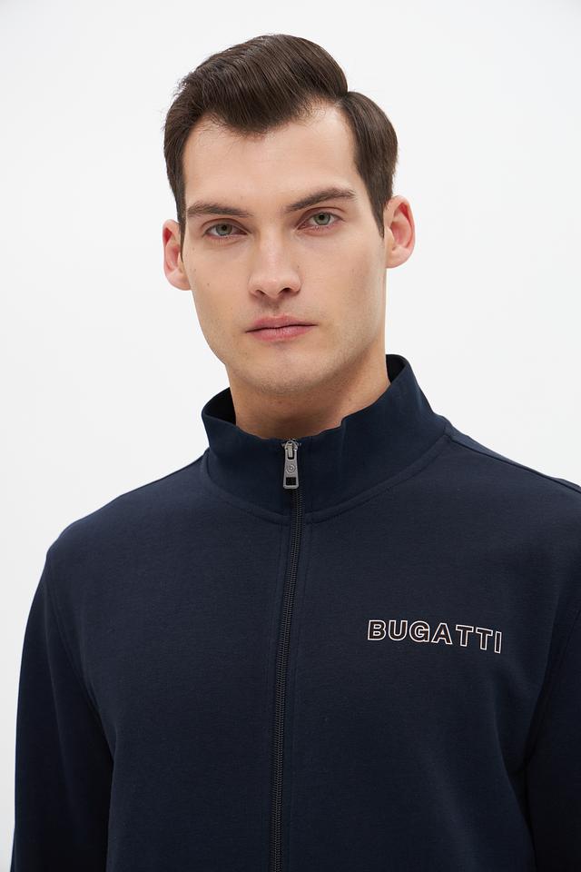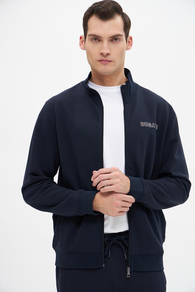 Кардиган имеет удобную застёжку-молнию, воротник-стойку и эластичные манжеты. Сочетание хлопка и полиэстера в составе обеспечивает комфорт, мягкость и долговечность изделия. На груди расположен логотип бренда Bugatti.