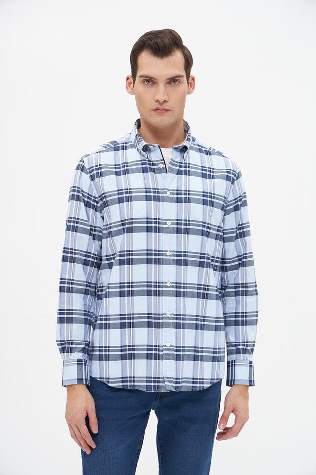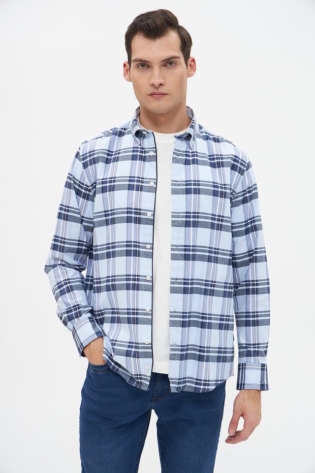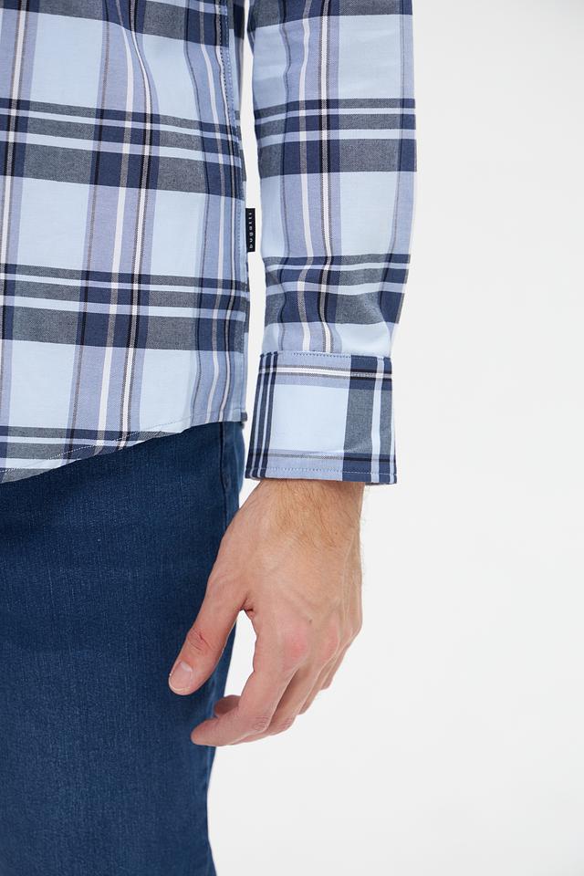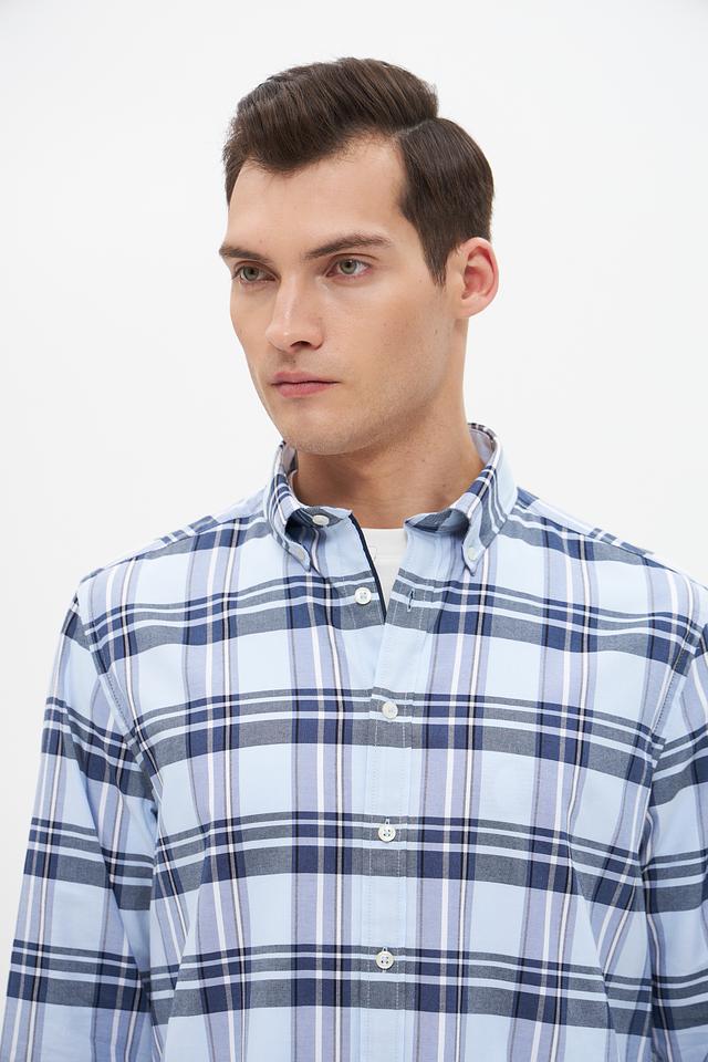 Мужская рубашка Bugatti голубого цвета в классическую клетку – это стильное и универсальное решение для создания повседневного образа. Изготовлена из 100% хлопка, обеспечивающего комфорт и воздухопроницаемость. Состав: хлопок 100%