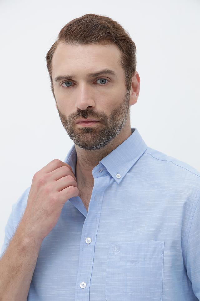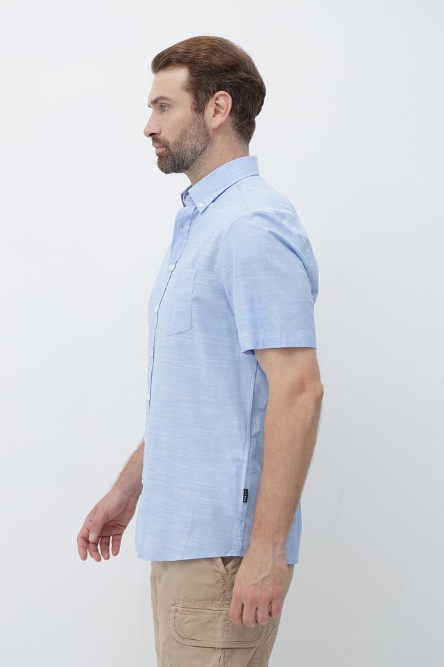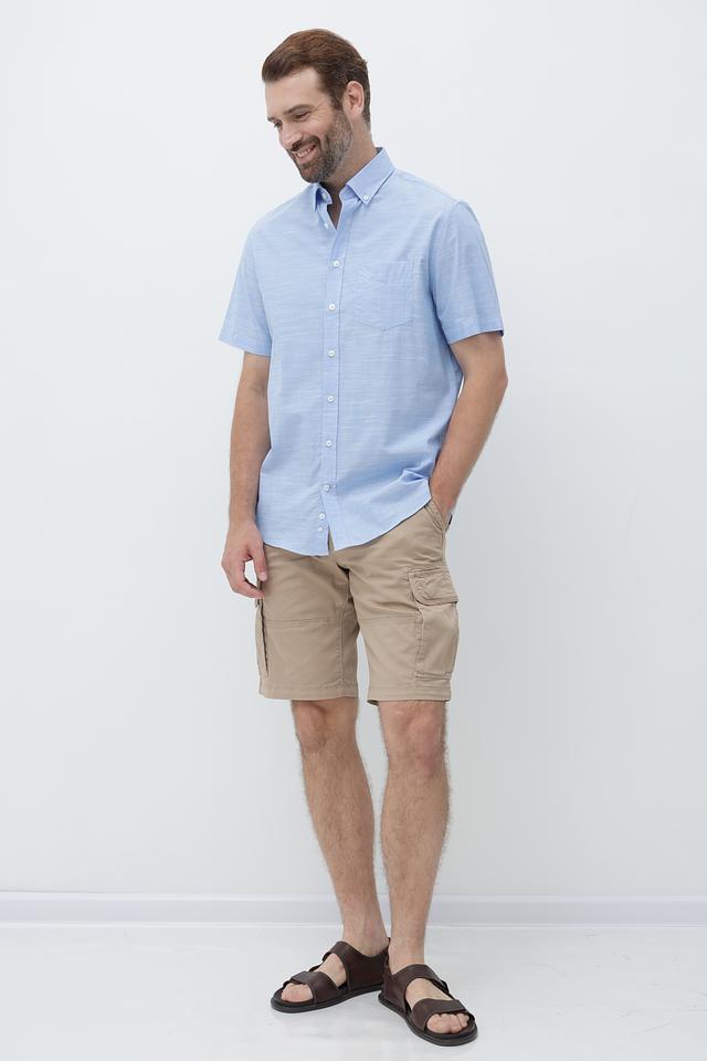 Рубашка имеет классический крой с короткими рукавами и воротником на пуговицах. Изготовлена из высококачественного 100% хлопка, что обеспечивает комфорт и воздухопроницаемость в жаркую погоду.