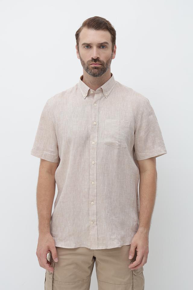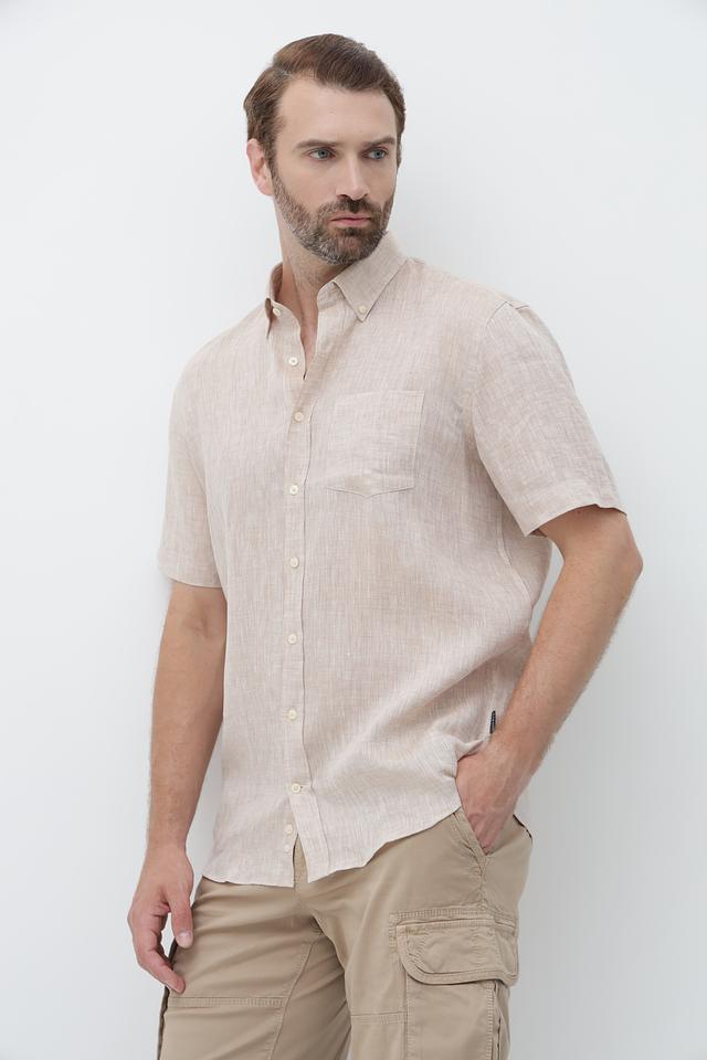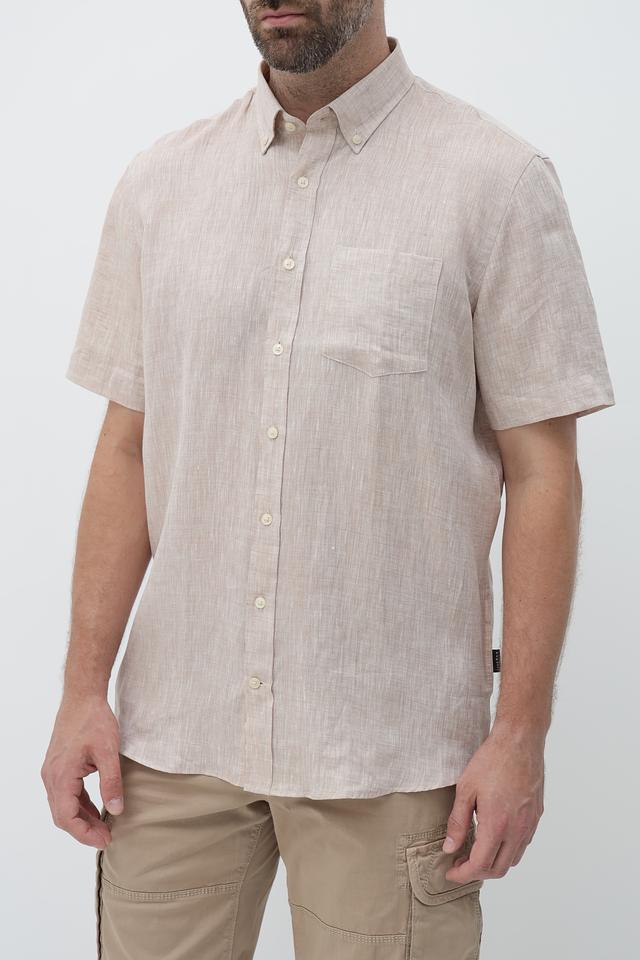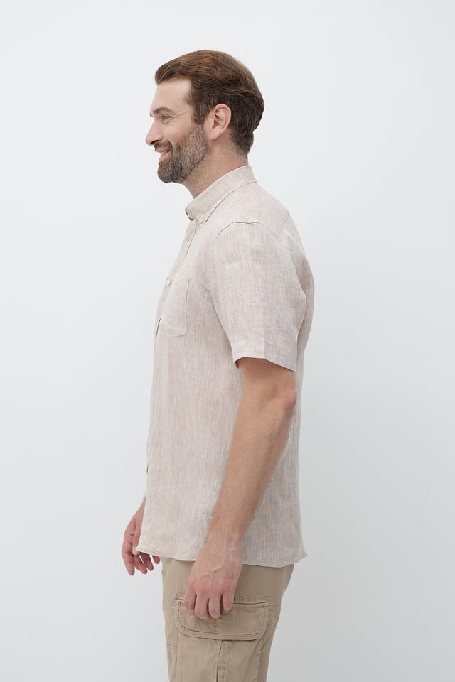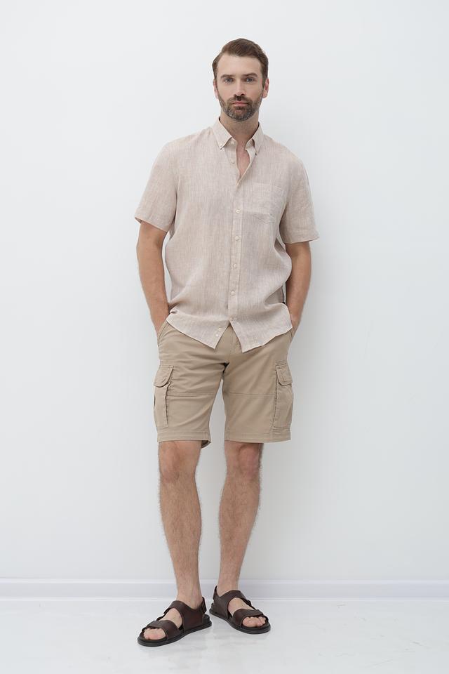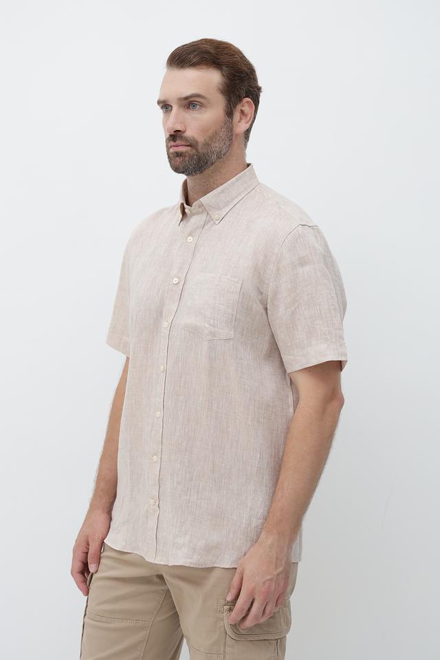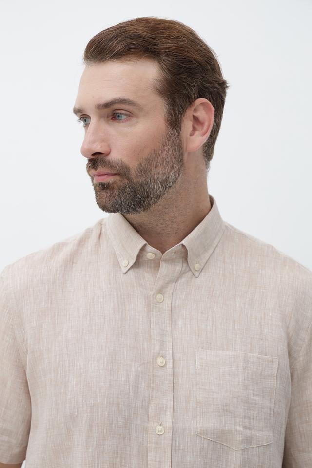 Мужская рубашка Bugatti короткого рукава выполнена из 100% льна бежевого цвета. Лёгкая и дышащая модель идеально подойдёт для жаркой погоды, обеспечивая комфорт и стиль. Состав: лен 100%
