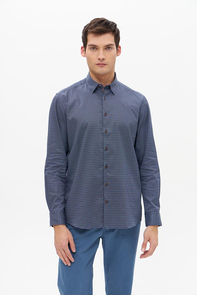 Мужская рубашка Bugatti синего цвета с оригинальным принтом – отличный выбор для создания стильного повседневного образа. Изготовлена из 100% хлопка, обеспечивающего комфорт и воздухопроницаемость. Состав: хлопок 100%