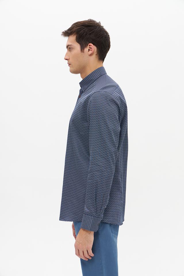 Эта рубашка от Bugatti станет незаменимой частью вашего гардероба. Выполнена в синем цвете с мелким геометрическим принтом, который придает ей изысканность и индивидуальность.