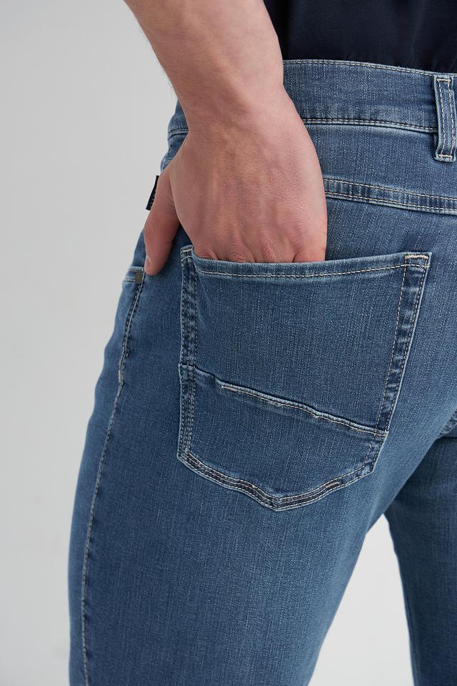 Джинсы имеют прямой крой, который обеспечивает комфортную посадку и свободу движений. Ткань состоит из 92% хлопка, 6% эластомультиэстера и 2% эластана, что гарантирует мягкость, эластичность и износостойкость.