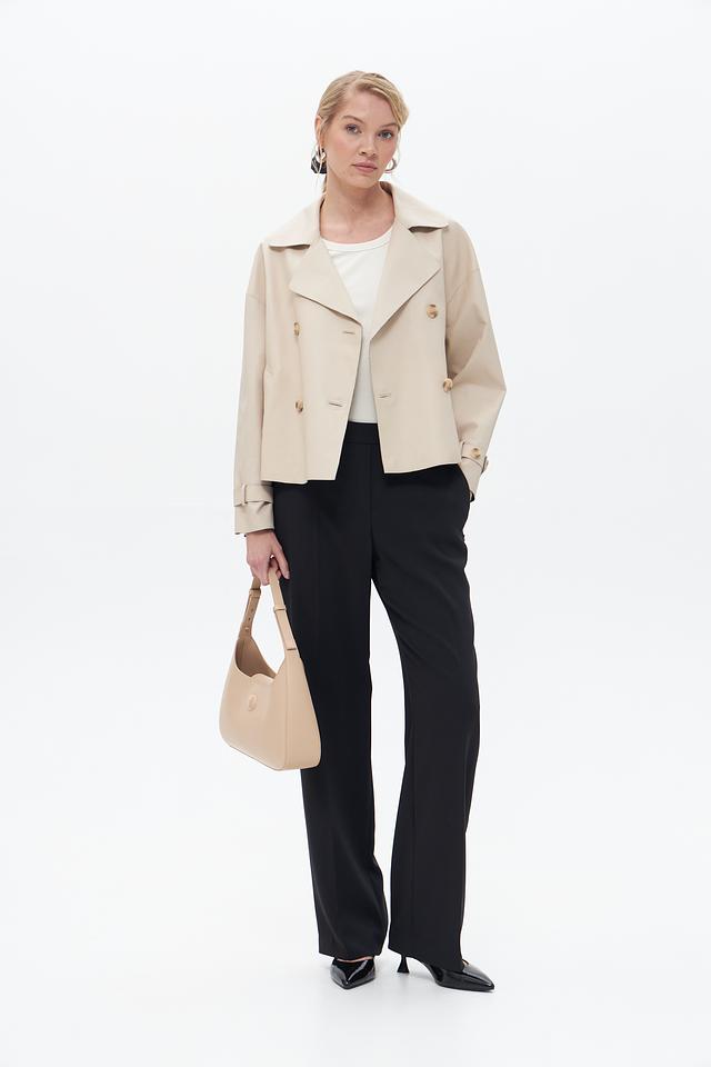 Куртка имеет прямой крой, который подходит для любой фигуры. Застежка на пуговицы, а также наличие боковых карманов делают ее практичной и удобной в использовании. Отделка золотистыми пуговицами добавляет изысканности.