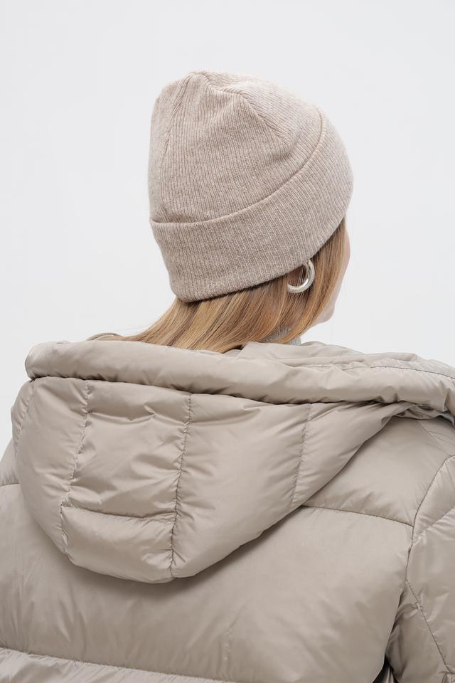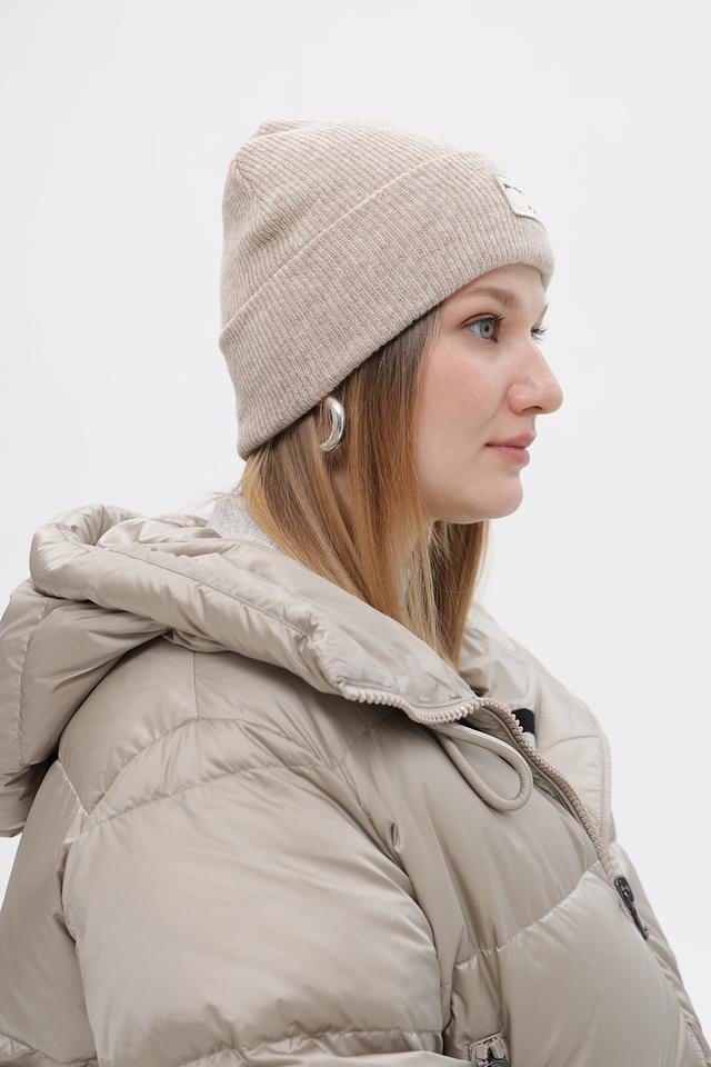 Модель имеет классическую форму и деликатную вязаную текстуру. Шапка украшена небольшим нашивкой с логотипом бренда. Универсальный дизайн шапки позволяет сочетать ее с различной верхней одеждой и создавать разнообразные образы.
