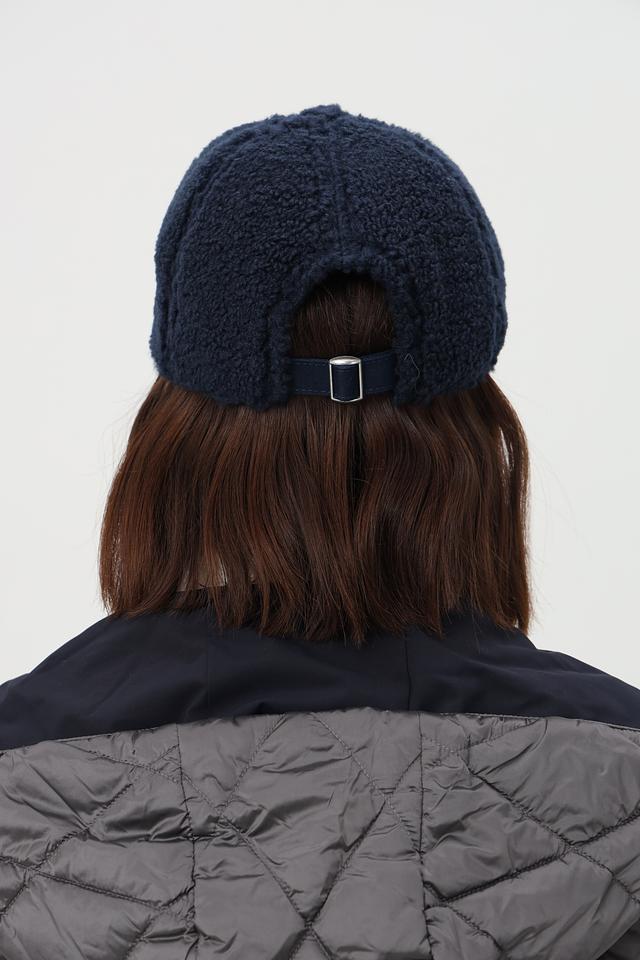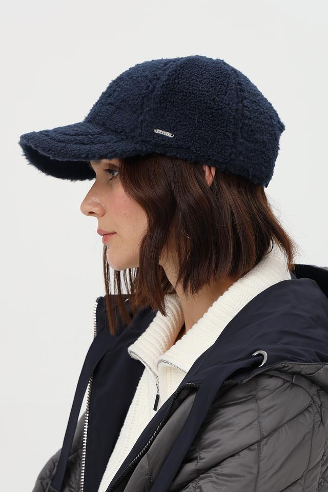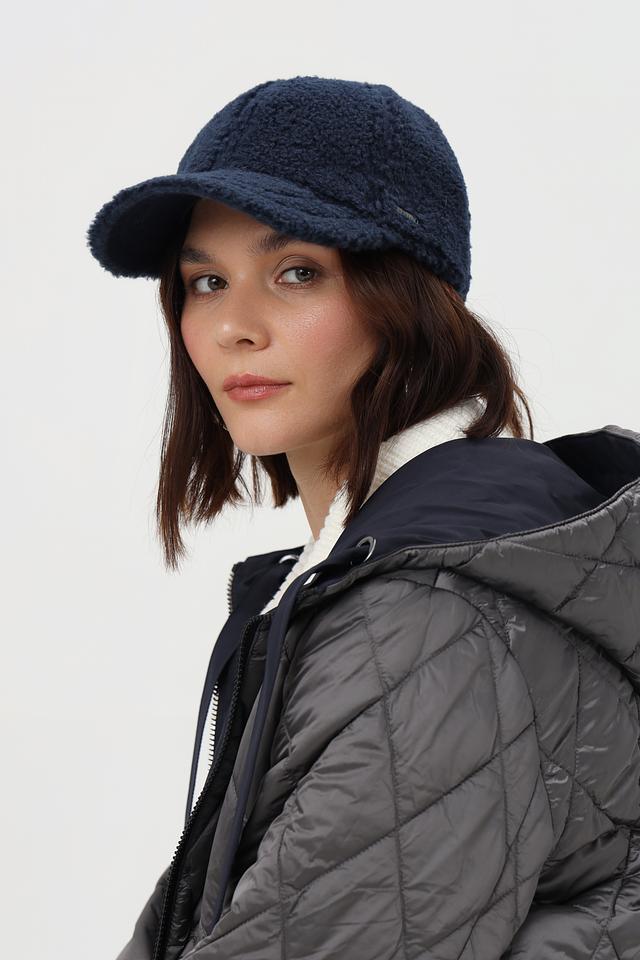Бейсболка имеет тёмно-синий цвет и фактурную, плюшевую поверхность, напоминающую барашка. Благодаря регулируемой застежке с пряжкой, вы сможете подогнать её под свой размер головы.