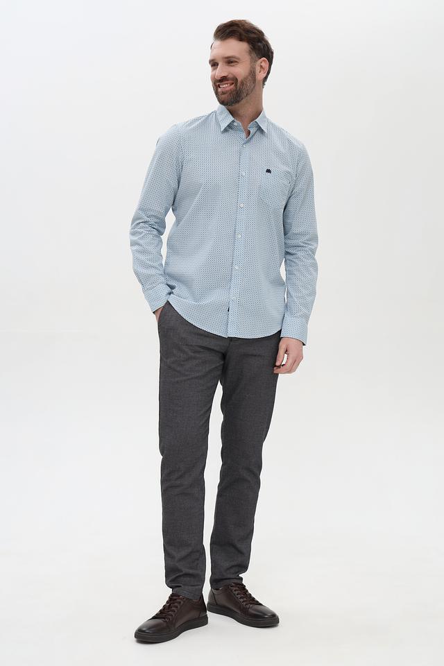Брюки имеют классический крой, обеспечивающий комфортную посадку. Изготовлены из смеси хлопка, полиэстера, вискозы и эластана, что гарантирует приятные тактильные ощущения и хорошую износостойкость. Состав ткани обеспечивает воздухопроницаемость и лёгкость в уходе.
