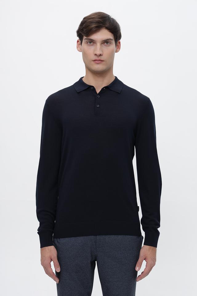 Мужской поло-джемпер Bugatti тёмно-синего цвета, выполнен из 100% шерсти. Классический крой и высокое качество материала обеспечивают комфорт и элегантный внешний вид. Состав: шерсть 100%