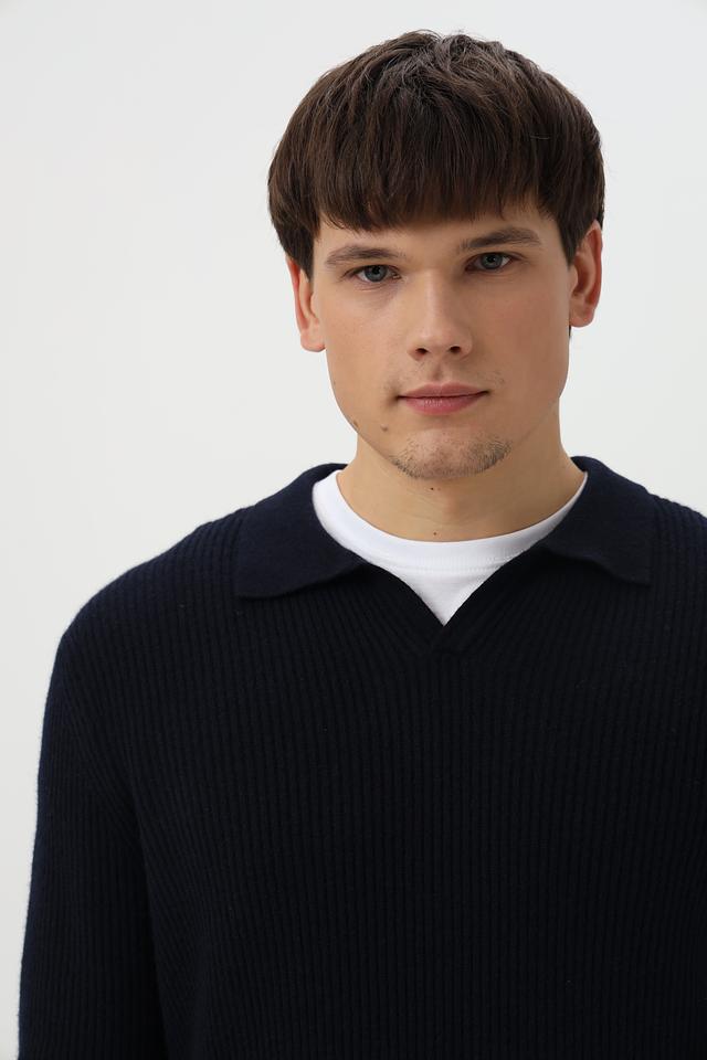 Мужской джемпер Bugatti темно-синего цвета с воротником-стойкой. Изготовлен из высококачественной шерсти и полиамида, обеспечивающих комфорт и долговечность. Состав: шерсть 80%, полиамид 20%
