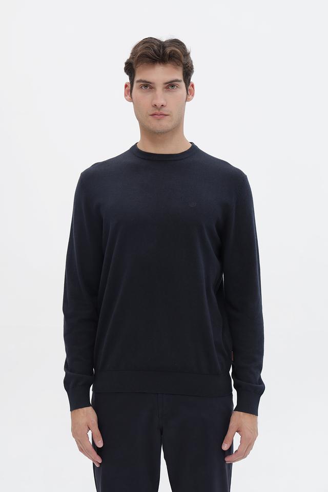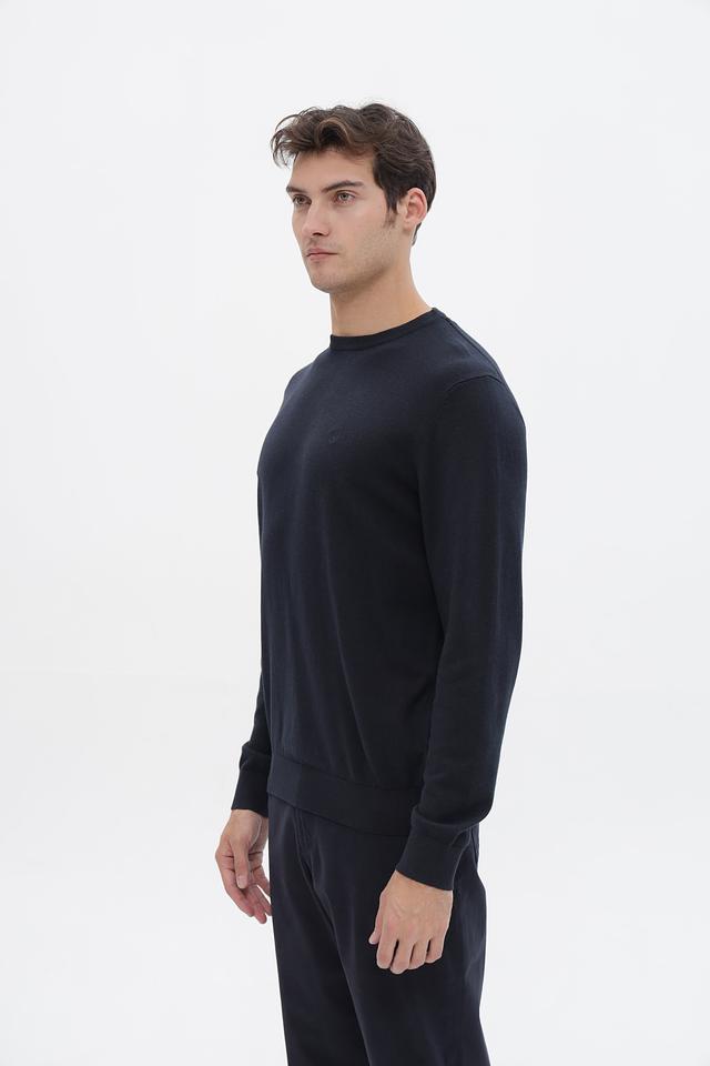 Цвет джемпера – насыщенный темно-синий, который легко сочетается с различными элементами одежды. Отсутствие ярких деталей и логотипов делает этот джемпер универсальным и подходящим для создания различных образов. Он идеально подойдет для повседневной носки, а также для создания более формальных образов в сочетании с брюками и пиджаком.