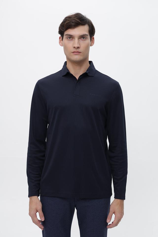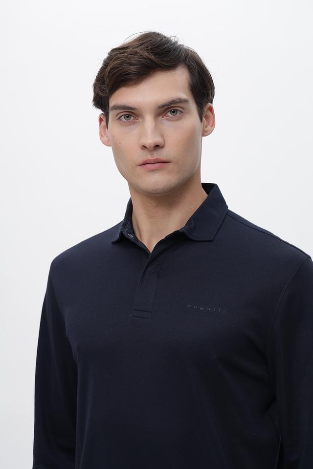 Мужское поло Bugatti тёмно-синего цвета с длинным рукавом выполнено из сочетания хлопка и полиэстера. Удобный крой и лаконичный дизайн делают эту модель отличным выбором для повседневной носки. Состав: полиэстер 50%, хлопок 50%