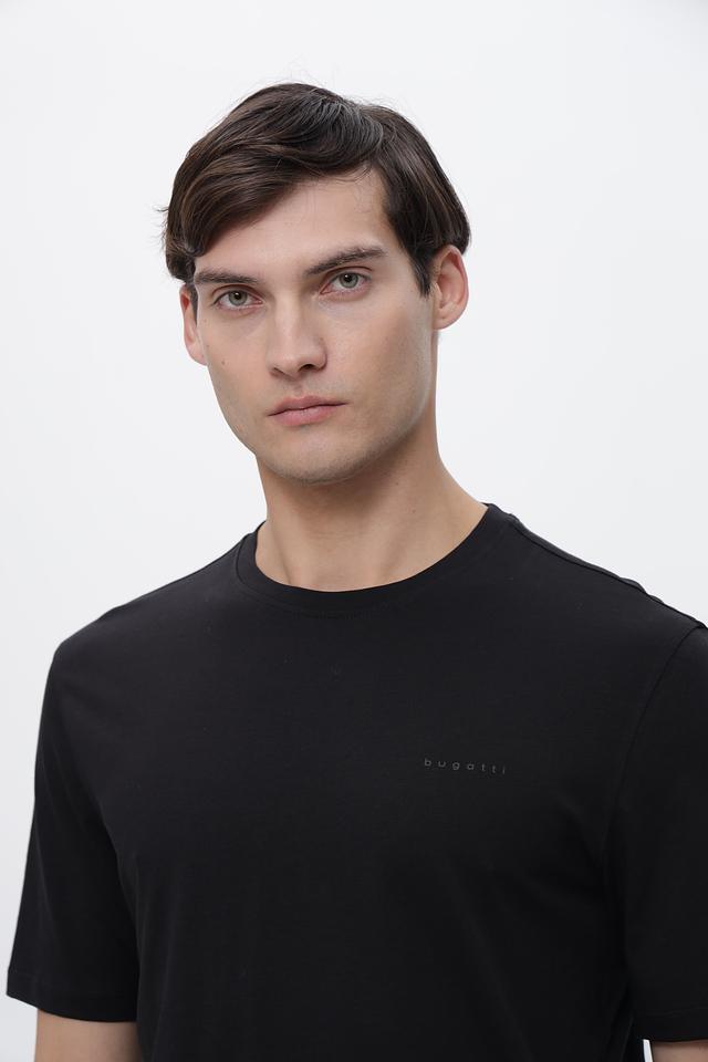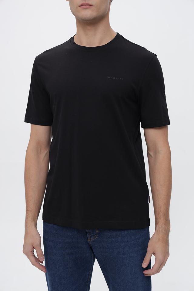 Мужская футболка Bugatti классического кроя выполнена в насыщенном чёрном цвете. Изготовлена из высококачественного 100% хлопка, обеспечивающего комфорт и воздухопроницаемость.