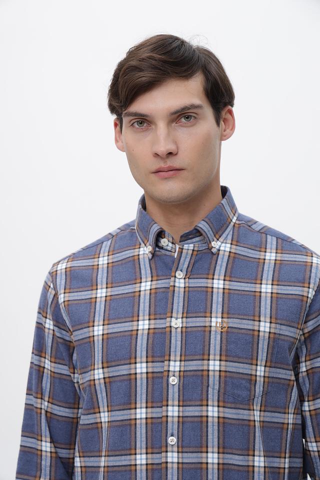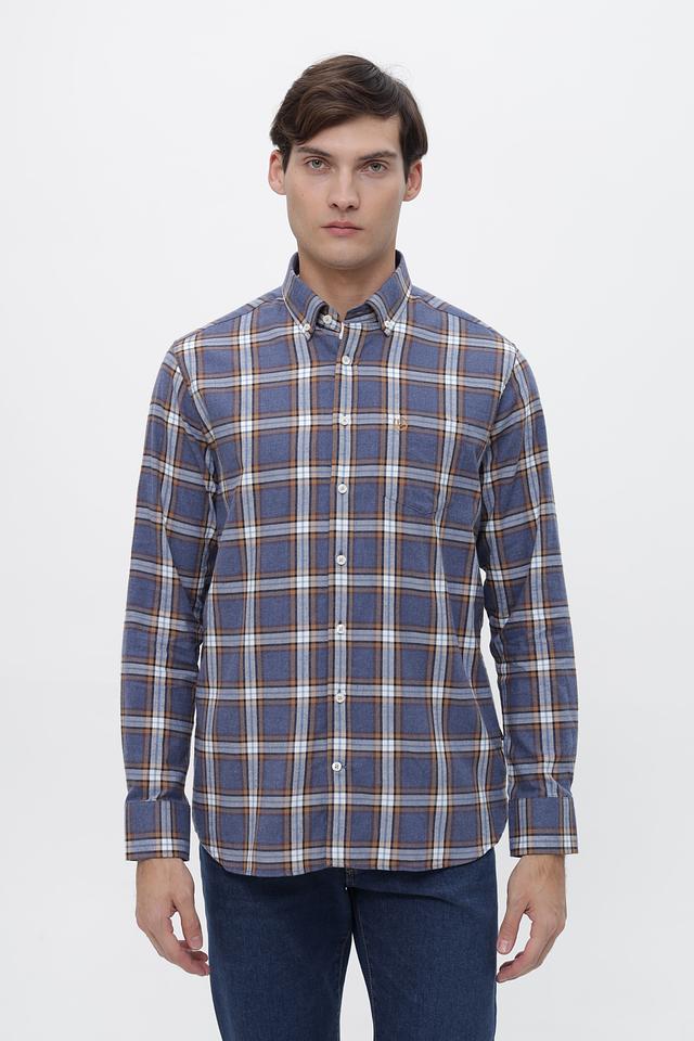 Мужская рубашка Bugatti синего цвета в классическую клетку. Изготовлена из 100% хлопка, обеспечивающего комфорт и воздухопроницаемость. Отличный выбор для создания повседневного образа. Состав: хлопок 100%