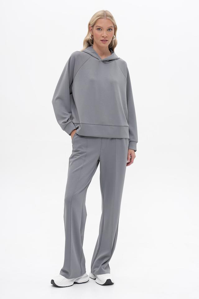 Брюки имеют свободный крой, обеспечивающий свободу движений, а пояс на кулиске позволяет регулировать посадку по фигуре. Классический серый цвет легко сочетается с различными элементами гардероба.