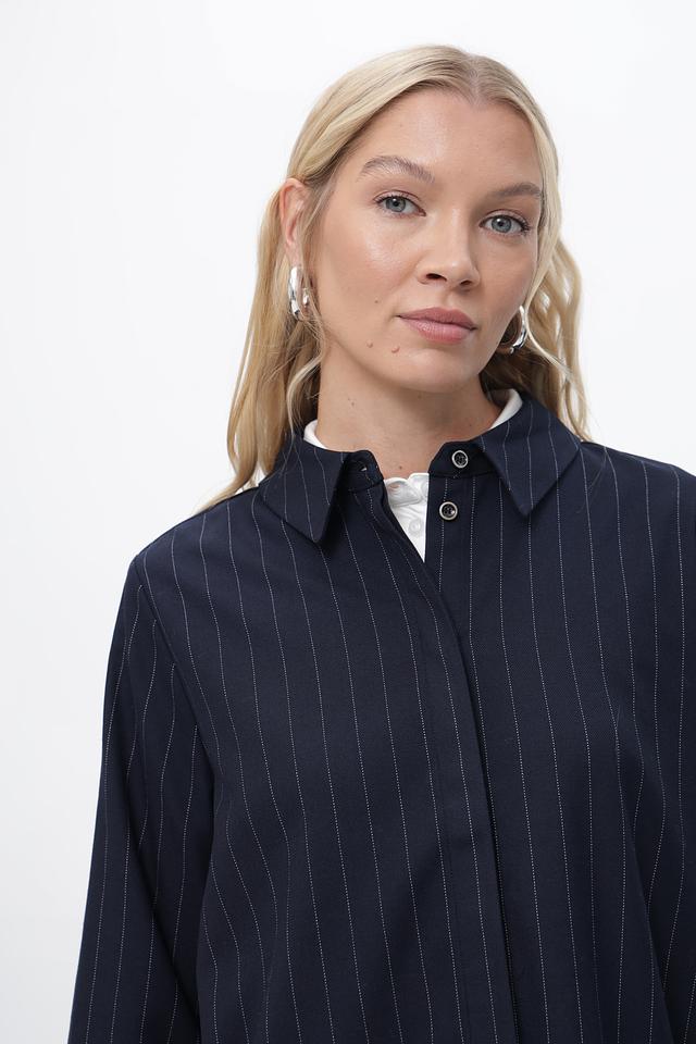 Женская рубашка Bugatti темно-синего цвета с вертикальной полоской – стильное и универсальное решение для создания элегантного образа. Классический крой и длинные рукава делают эту рубашку подходящей для различных случаев. Состав: полиэстер 63%, вискоза 34%, эластан 3%