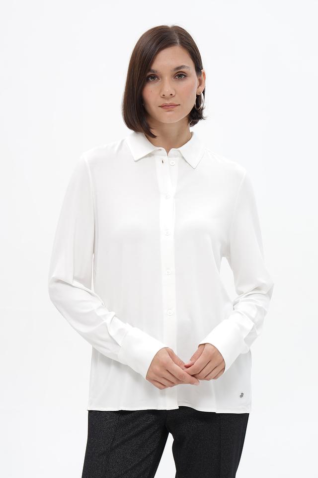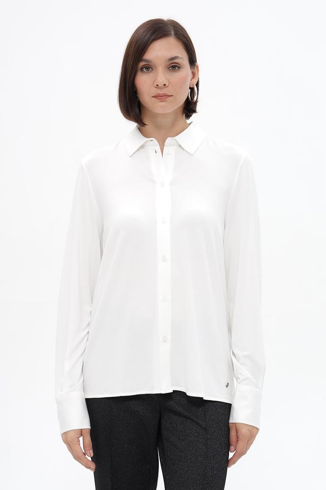 Классическая блузка Bugatti белого цвета, выполненная из струящейся вискозы с добавлением эластана. Модель имеет прямой, слегка приталенный силуэт, который подчеркивает фигуру, не сковывая движений.