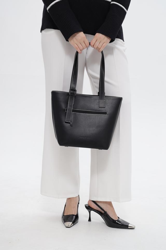 Сумка имеет лаконичный и стильный дизайн, который легко сочетается с различными образами. Удобные ручки обеспечивают комфортное ношение в руке, а прочный материал гарантирует долговечность изделия.