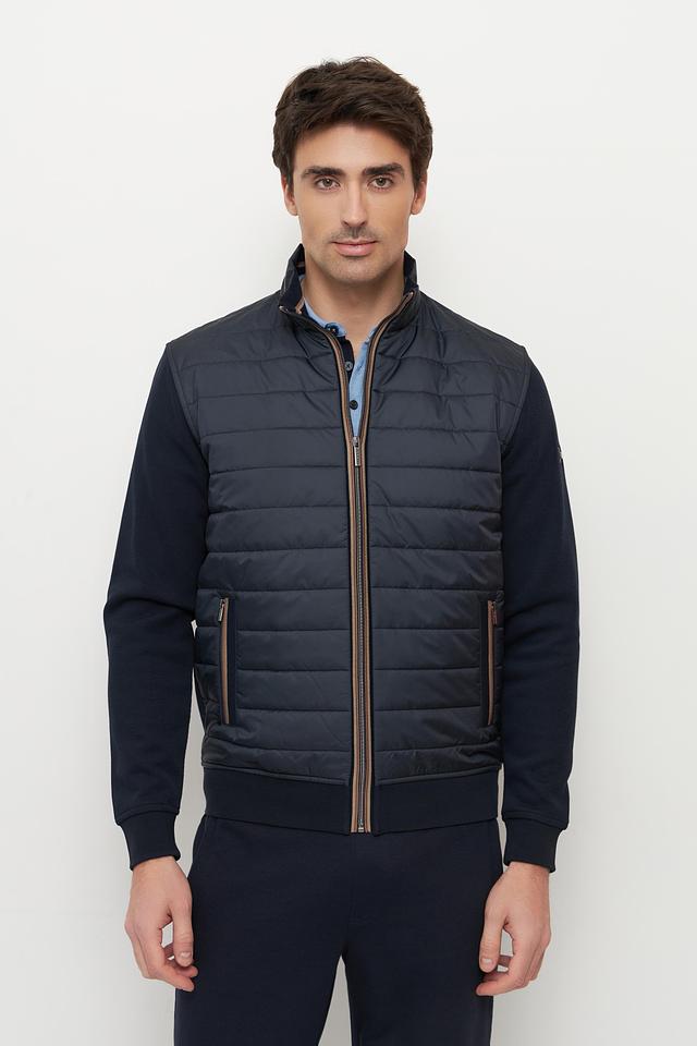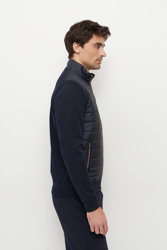 Мужской кардиган Bugatti темно-синего цвета – это стильное сочетание стеганой планки и трикотажных рукавов. Модель застегивается на молнию и дополнена боковыми карманами для удобства. Состав: хлопок 90%, полиэстер 20%