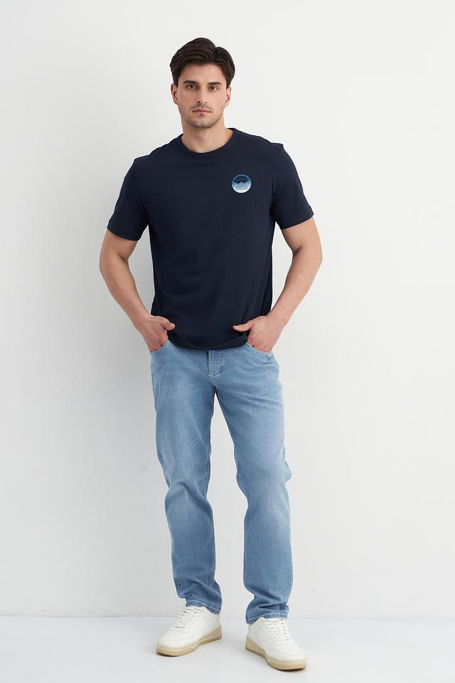 Джинсы имеют классический прямой крой, обеспечивающий комфортную посадку по фигуре. Состав ткани включает 88% хлопка, 10% полиэстера и 2% эластана, что гарантирует удобство в носке, износостойкость и небольшую степень эластичности.