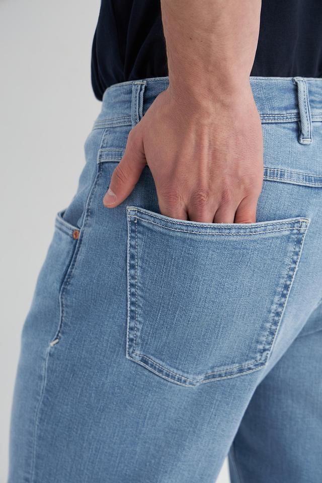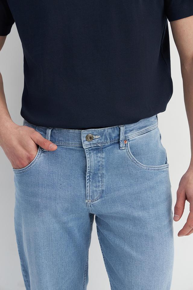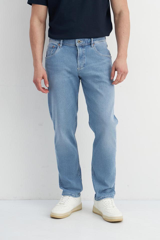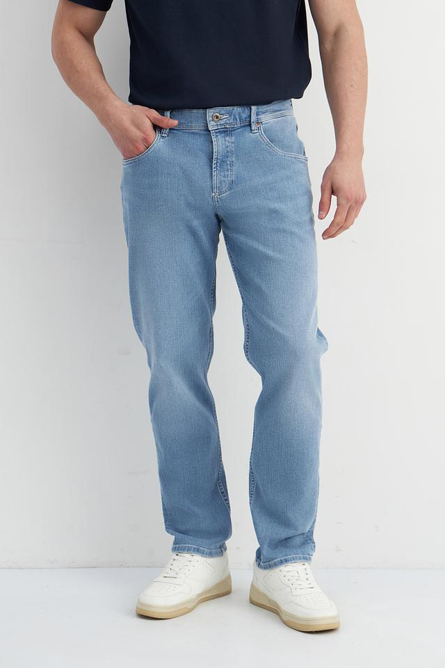 Светло-голубые джинсы Bugatti классического кроя. Модель выполнена из качественного хлопка с добавлением полиэстера и эластана для комфорта и долговечности. Отличное решение для повседневного образа. Состав: хлопок 88%, полиэстер 10%, эластан 2%