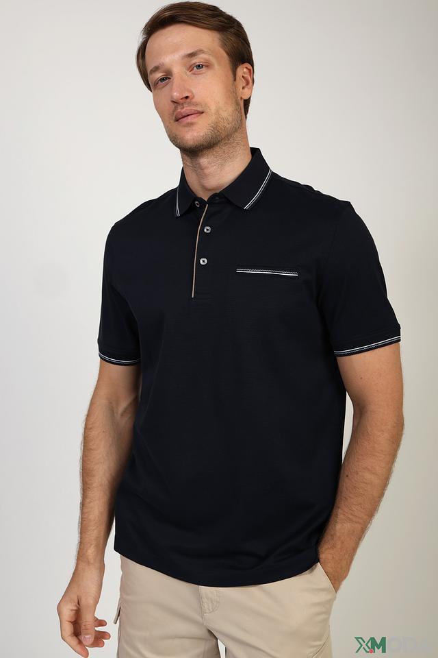 Мужское поло Bugatti тёмно-синего цвета с контрастной белой отделкой на воротнике и рукавах. Классический крой и 100% хлопковый состав обеспечивают комфорт и удобство в носке. Состав: хлопок 100%