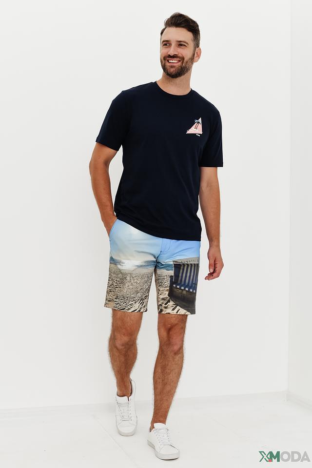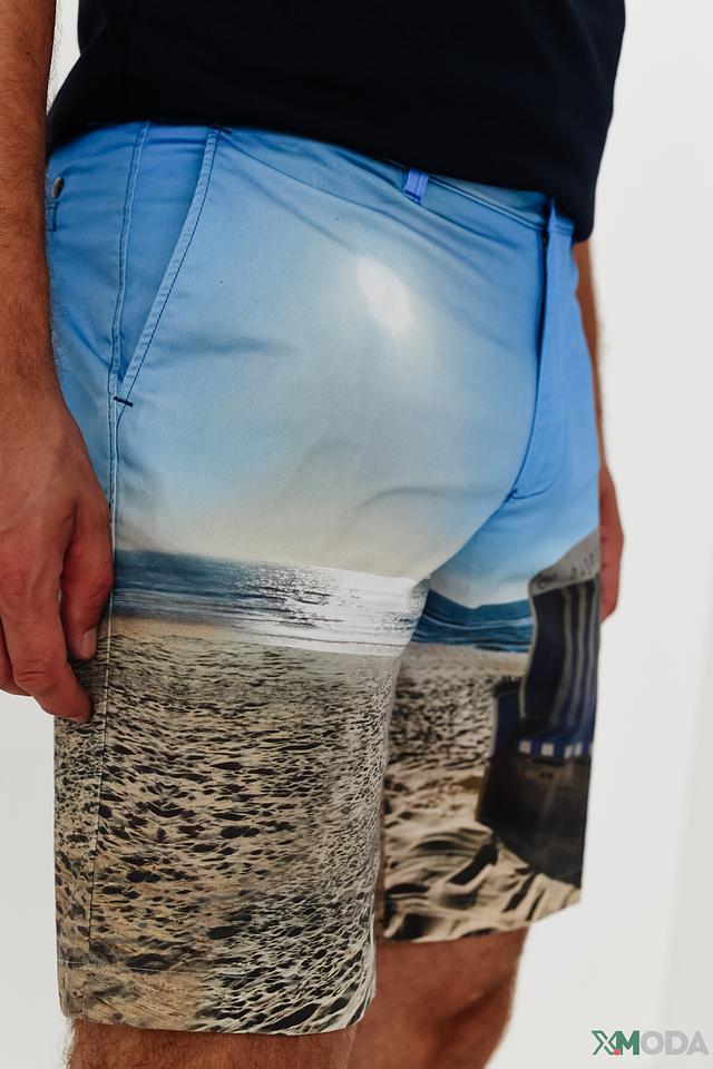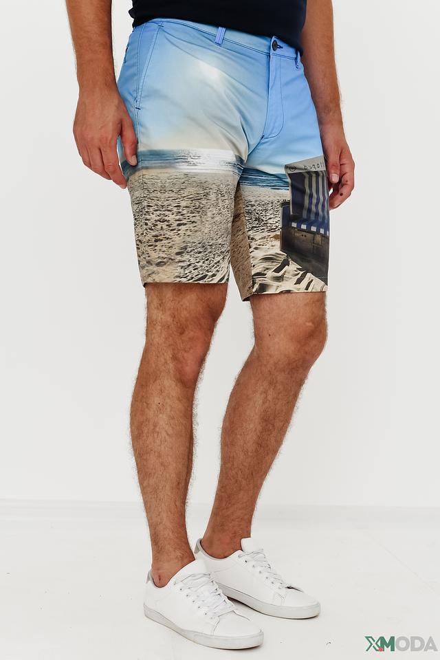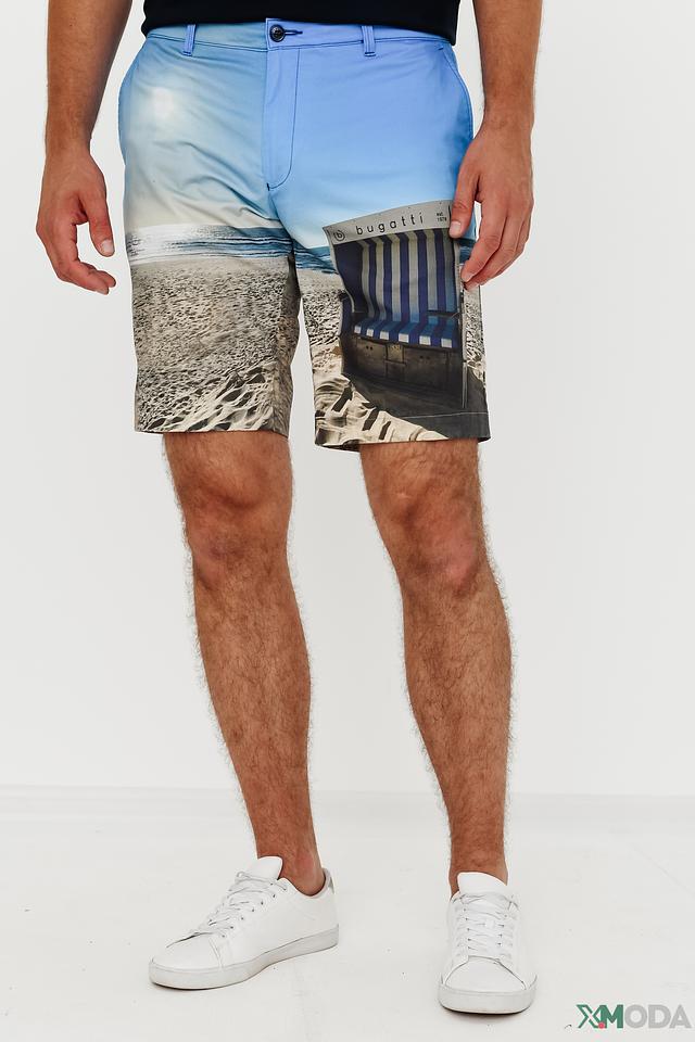 Мужские шорты Bugatti голубого цвета с ярким принтом в виде морского пейзажа. Модель выполнена из хлопка с добавлением эластана для комфорта и свободы движений. Состав: хлопок 95%, эластан 5%