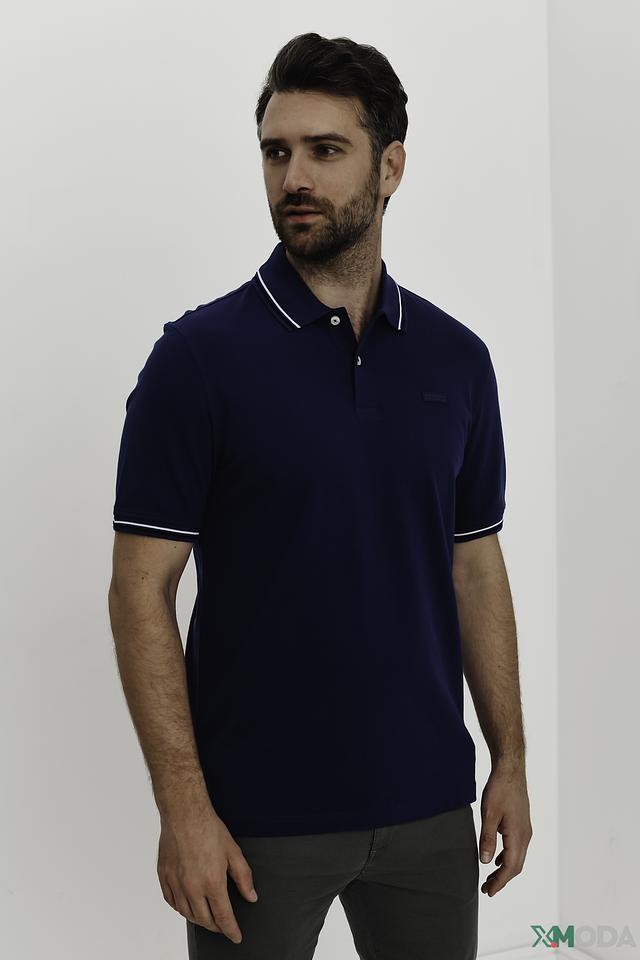 Мужское поло Bugatti синего цвета с белой отделкой на воротнике и рукавах. Классический крой и 100% хлопковый состав обеспечивают комфорт и удобство в носке. Состав: хлопок 100%