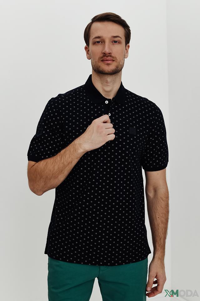 Мужское поло от Bugatti – это сочетание элегантности и комфорта. Данная модель выполнена в классическом чёрном цвете и украшена мелким белым горошком, что придает ей особый шарм.