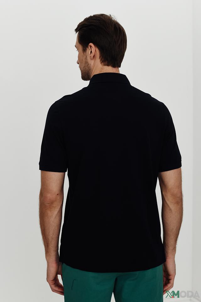 Классический крой поло подчеркивает достоинства фигуры, а лаконичный дизайн делает его подходящим для различных стилей одежды. Воротник и планка с пуговицами выполнены в тон основной ткани, а манжеты рукавов и нижний край поло аккуратно обработаны.
