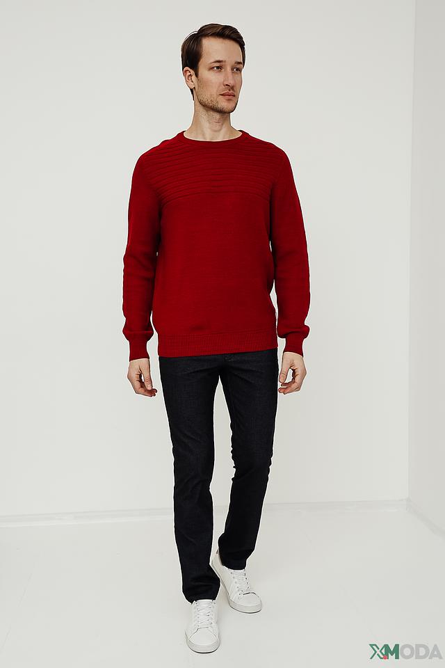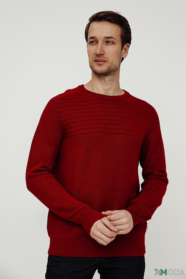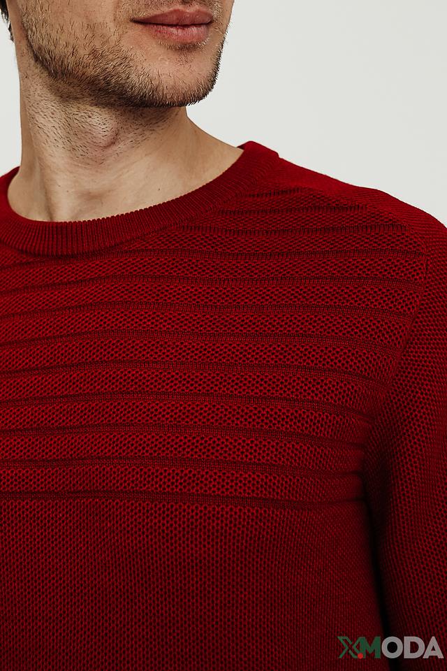Мужской джемпер Bugatti насыщенного красного цвета с текстурным узором. Изготовлен из мягкой смеси шерсти и полиакрила, обеспечивающей комфорт и тепло. Идеальный выбор для создания стильного повседневного образа. Состав: шерсть 50%, полиакрил 50%