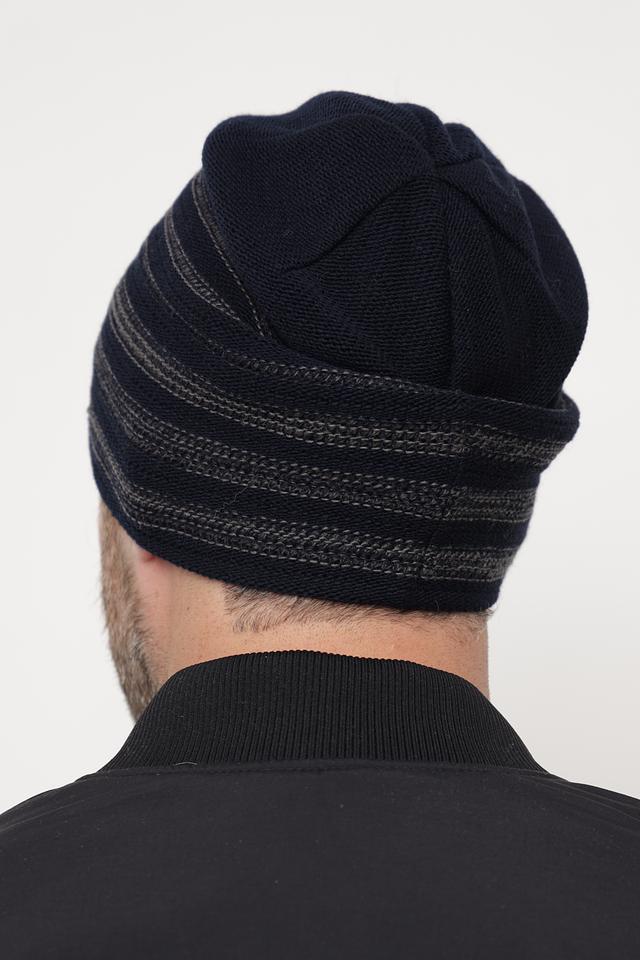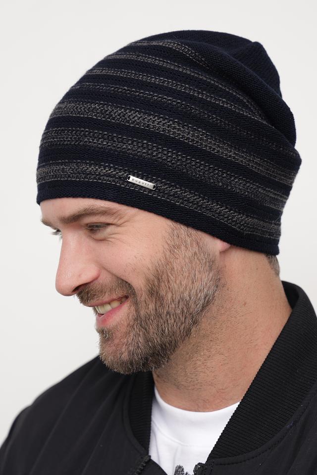 Мужская шапка Bugatti ACC тёмно-синего цвета с горизонтальными полосами. Изготовлена из мягкой шерсти и полиакрила, обеспечивающей комфорт и тепло в холодную погоду. Стильный дизайн и качественные материалы. Состав: шерсть 50%, полиакрил 50%
