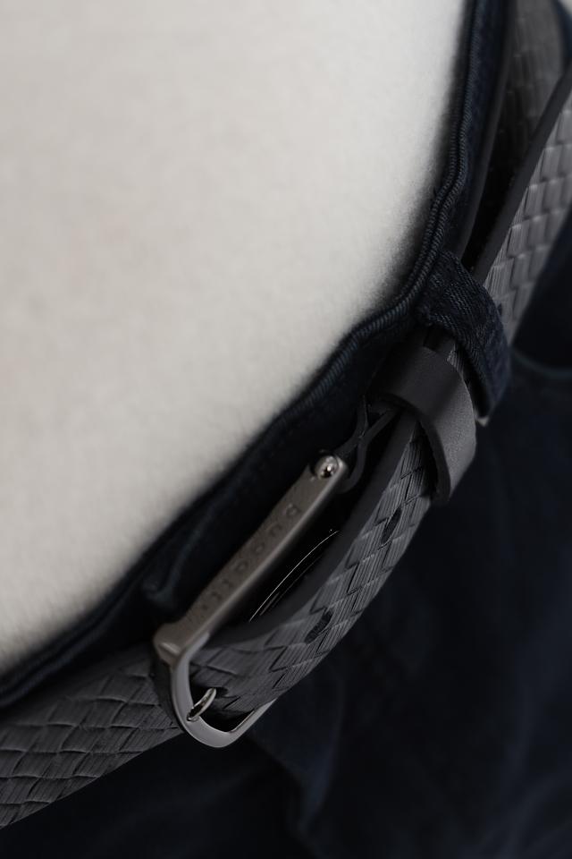 Основным материалом является высококачественная натуральная кожа, обеспечивающая долговечность и комфорт в носке. Особенностью данного ремня является его фактурное плетение, которое придает ему элегантный и современный вид. Пряжка выполнена из металла, что гарантирует надежную фиксацию ремня.