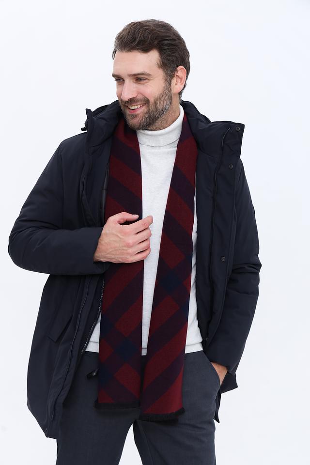 Этот шарф от Bugatti ACC – идеальный аксессуар для создания изысканного и утонченного образа. Шарф выполнен в бордовом цвете с контрастным темно-синим клетчатым рисунком, который придает ему особый шарм.