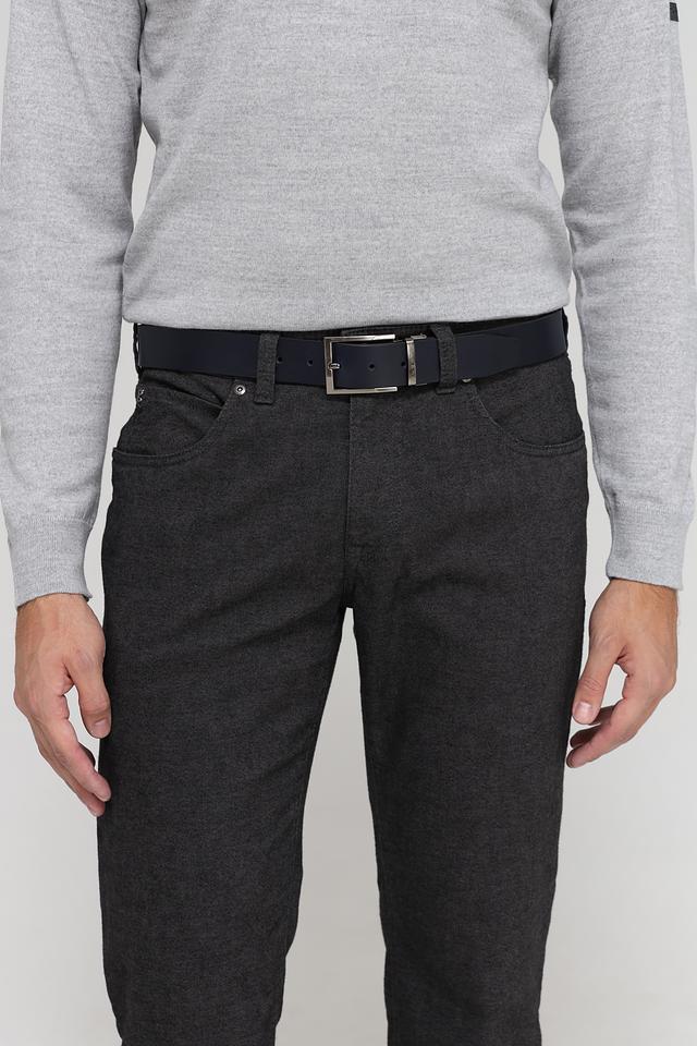 Ремень имеет классический чёрный цвет, который легко сочетается с различными стилями одежды – от делового до повседневного. Пряжка выполнена из прочного металла и имеет лаконичный дизайн. Ремень оснащён удобным механизмом регулировки длины, что позволяет подобрать оптимальный размер.