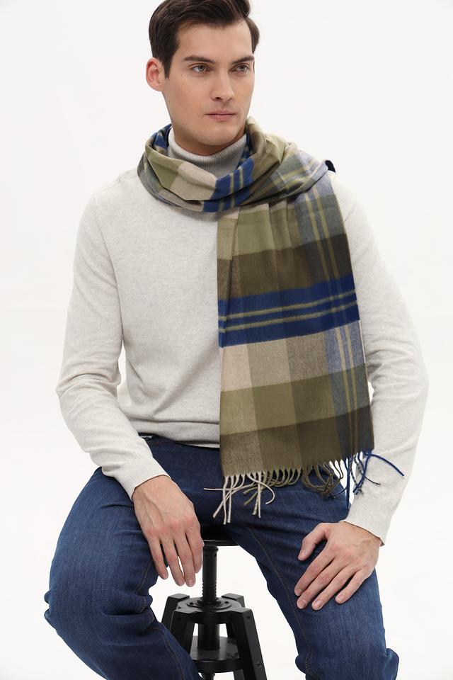 Мужской шарф Bugatti ACC оливкового, синего и бежевого цветов в классическую клетку. Изготовлен из мягкого полиакрила, обеспечивающего комфорт и тепло в холодную погоду. Аксессуар с бахромой. Состав: полиакрил 100%