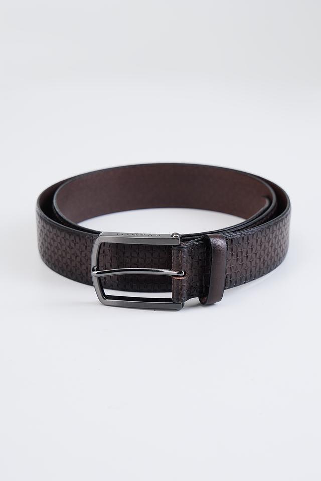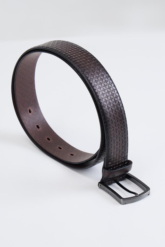 Особенностью данного ремня является его текстура: кожа имеет плетёный рисунок, который придает аксессуару изысканный вид. Пряжка выполнена из металла тёмно-серого цвета, что гармонично сочетается с коричневым ремнём.