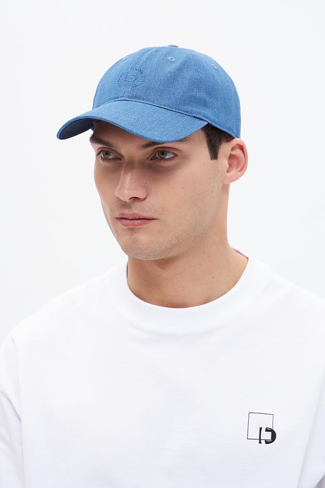 Бейсболка имеет классический крой и голубой цвет, который легко сочетается с различными нарядами. На передней панели расположена вышивка, придающая модели индивидуальность.