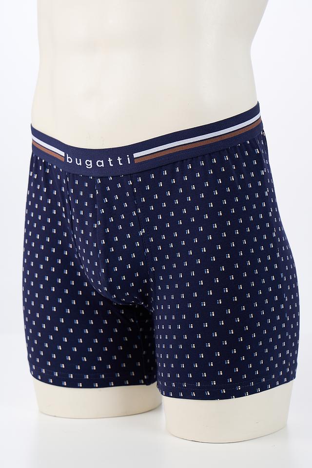 Мужские трусы Bugatti ACC синего цвета с мелкими белыми узорами. Изготовлены из мягкого хлопка с добавлением эластана для комфортной посадки и свободы движений. Отличный выбор для повседневной носки. Состав: хлопок 95%, эластан 5%